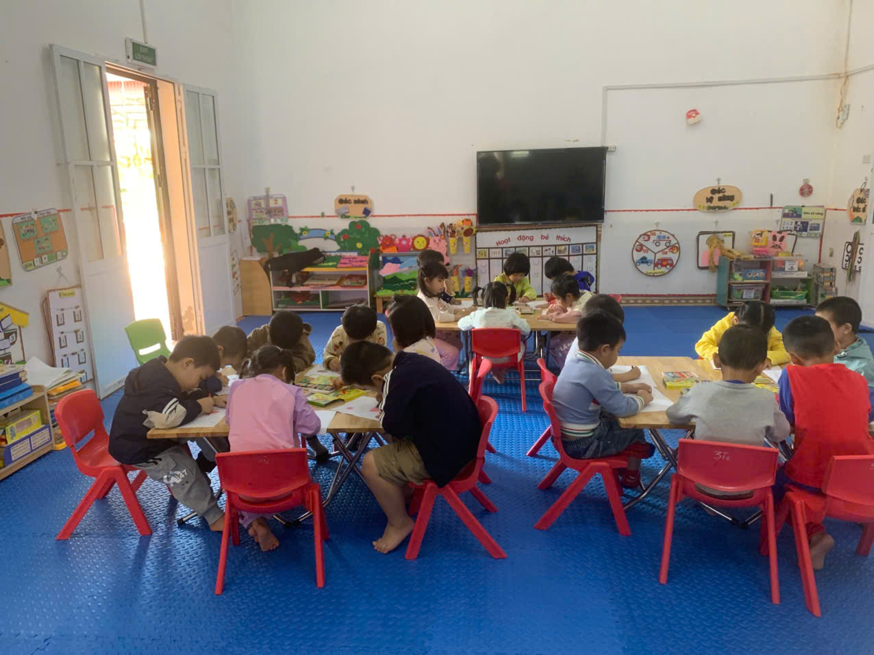 Hình ảnh sản phẩm của trẻ cho thấy các bé đã vẽ được những ngôi nhà theo ý thích với nhiều hình dạng và màu sắc khác nhau. Tranh của trẻ thể hiện rõ các bộ phận cơ bản của ngôi nhà như mái, cửa ra vào, cửa sổ và được bổ sung thêm các chi tiết sáng tạo như cây xanh, ông mặt trời, mây trời hoặc người thân đứng trước cửa. Mỗi bức tranh mang nét riêng, thể hiện khả năng quan sát, trí tưởng tượng và sự khéo léo của trẻ trong hoạt động tạo hình.