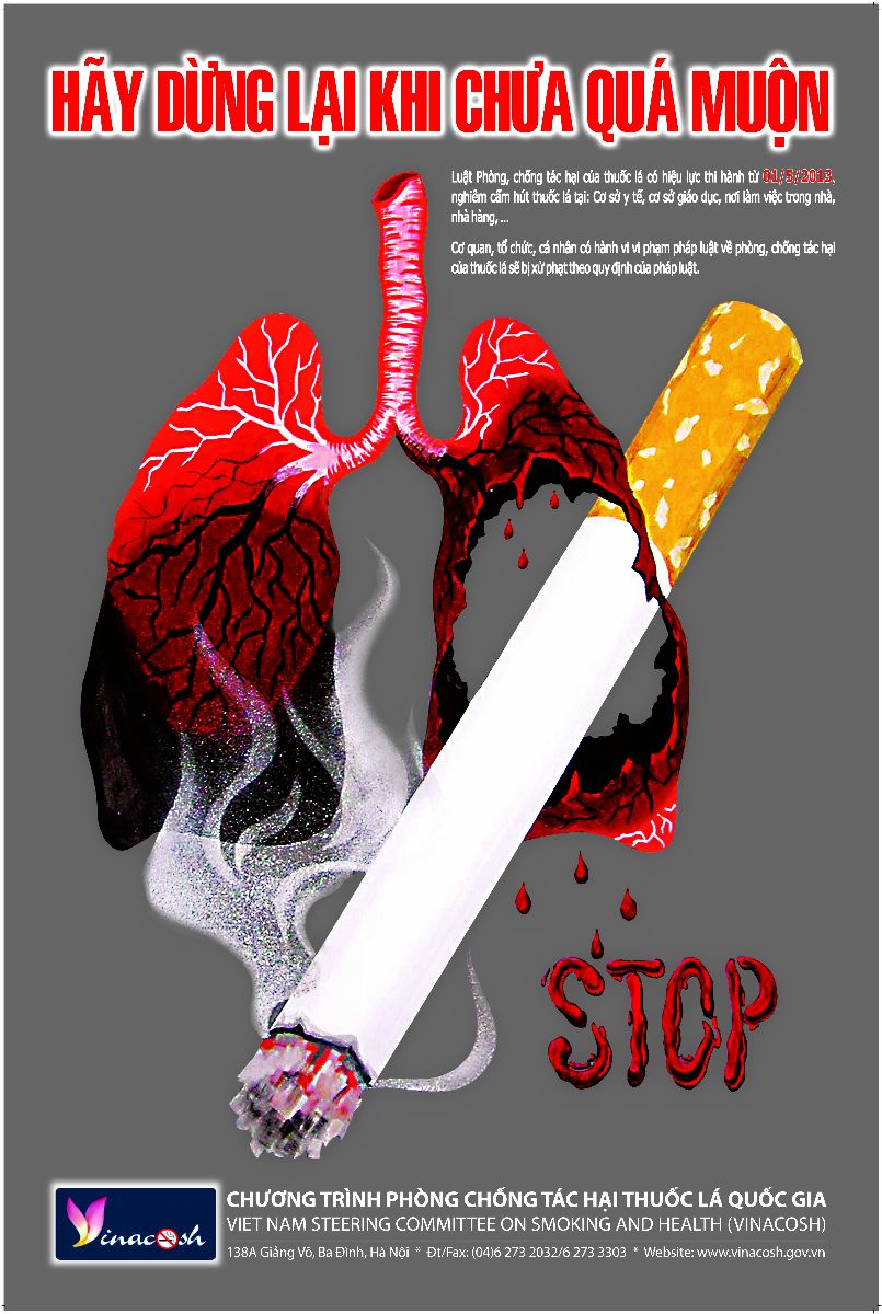 Ở Việt Nam có 15.6 triệu người hút thuốc, đứng thứ 3 trong khu vực Asean và đứng thứ 9 trên thế giới về số người hút thuốc. Trung bình cứ hai nam giới trưởng thành thì có một người hút thuốc, tỷ lệ hút thuốc ở thanh thiếu niên (15-24 tuổi) là 24,3%. Bên cạnh đó, có 28,5 triệu người không hút thuốc bị tiếp xúc với khói thuốc thụ động ở nhà và 5,9 triệu người không hút thuốc bị tiếp xúc với khói thuốc thụ động tại nơi làm việc. Khi hút thuốc lá, hoặc sống chung với người hút thuốc, khói thuốc hít qua phổi ngấm vào máu, tích luỹ lâu ngày trở thành điều kiện và nguyên nhân gây nên các bệnh tim mạch, viêm nhiễm đường hô hấp gây tổn thương trong lòng mạch máu. Vì vậy người hút thuốc lá dễ bị các bệnh như: rụng tóc, đục thủy tinh thể, da nhăn, giảm thính lực, sâu răng, ung thư da, bệnh phổi tắc nghẽn mạn tính, loãng xương, bệnh tim mạch, vàng móng tay, ung thư cổ tử cung, tinh trùng biến dạng, bệnh vảy nến, viêm tắc mạch máu, ung thư phổi và các cơ quan khác như: mũi, miệng, lưỡi, tuyến nước bọt, họng, thanh quản, thực quản, thận, dương vật, tụy.