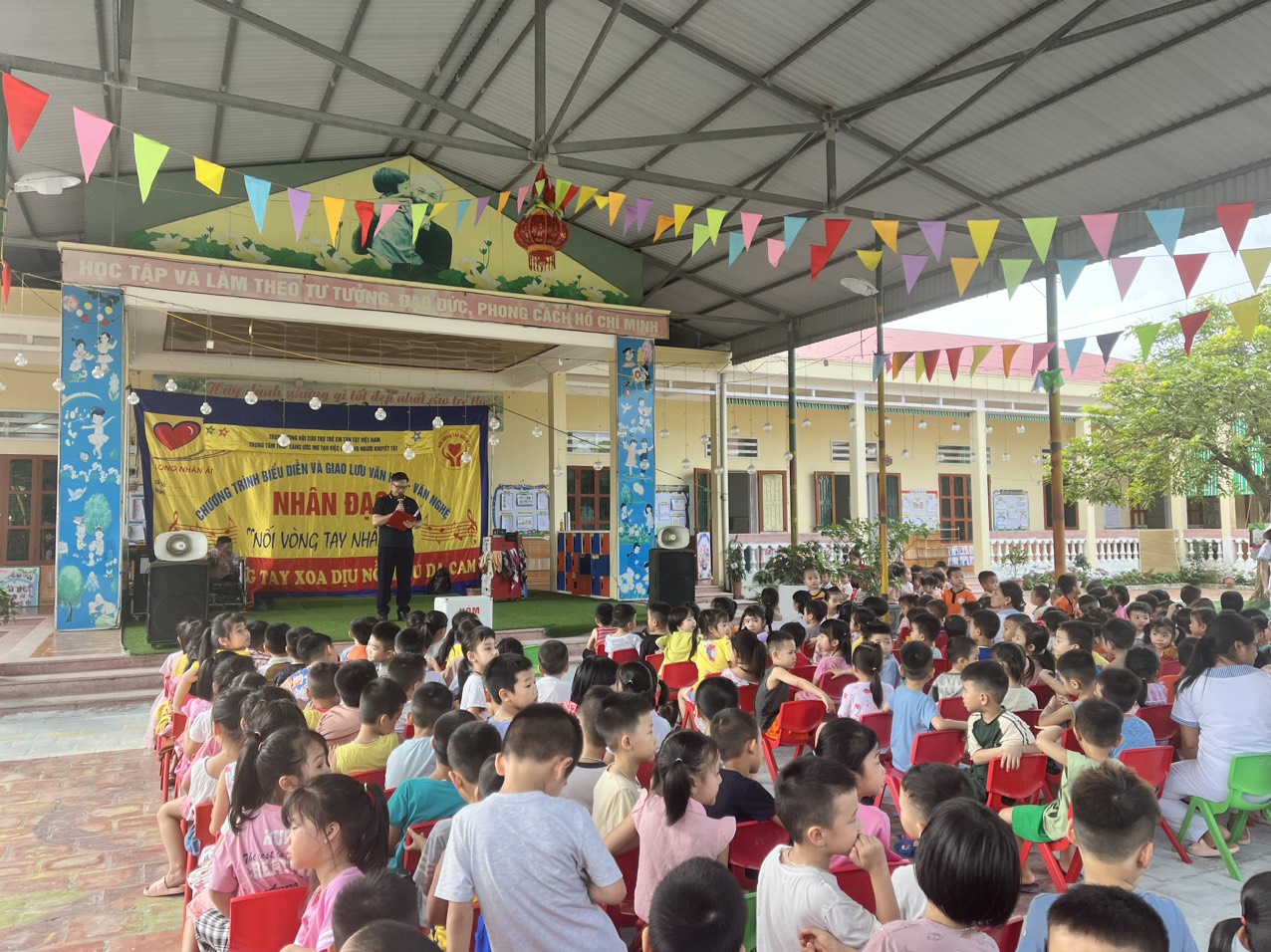 Với mong muốn góp một phần nhỏ nhằm giúp người khuyết tật tự tin vươn lên trong cuộc sống, trong buổi sinh hoạt giao lưu văn nghệ này, các thầy cô giáo và các em học sinh và các phụ huynh toàn trường đã quyên góp, ủng hộ được 1 số tiền nhỏ. Hi vọng với mòn quà nhỏ này phần nào giúp các em khắc phục được những khó khăn trong cuộc sống.