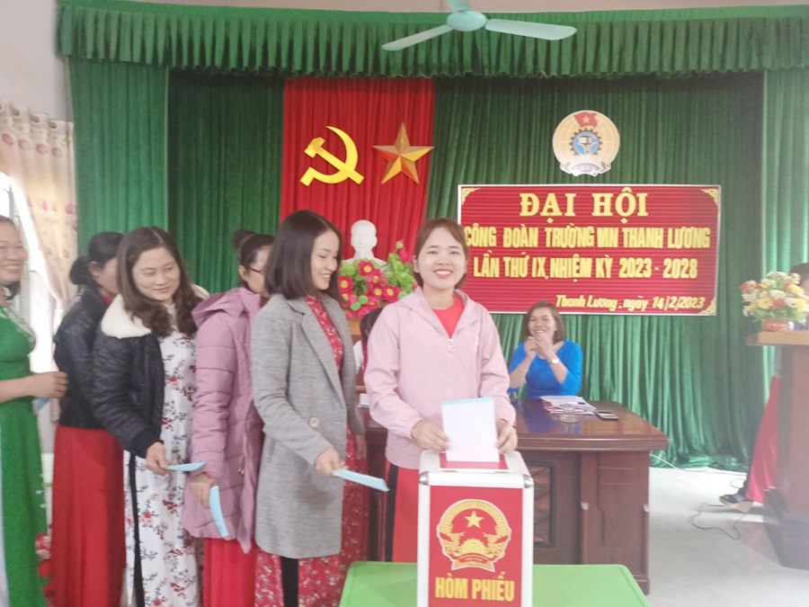 Đại hội đã dân chủ, tập trung trí tuệ, sáng suốt lựa chọn 03 đồng chí có đủ phẩm chất đạo đức, năng lực công tác, đảm bảo tiêu chuẩn và sự tín nhiệm của cán bộ, đoàn viên, CNVCLĐ vào Ban Chấp hành Công đoàn, nhiệm kỳ 2023 - 2028 và 01 đồng chí đại biểu thay mặt cho toàn thể đoàn viên công đoàn Trường MN Thanh Lương đi dự Đại hội XI Công đoàn huyện.