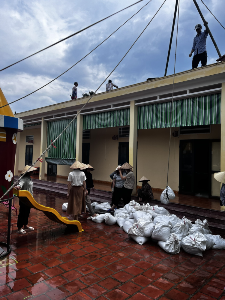 Để đảm bảo về an toàn và tránh thiệt hại về tài sản, ban giám hiệu nhà trường, giáo viên, nhân viên và phụ huynh học sinh đã tại trường trước khi bão về, tiến hành chằng chống cửa tránh gió đập, xúc cát để tránh gió lật mái tôn của trường, thu dọn các chậu, bồn cây, các đồ dùng đồ chơi bên ngoài và trong lớp học.... Dưới đây, là 1 số hình ảnh của trường mầm non Thanh Lương trong công tác phòng chống bão số 3