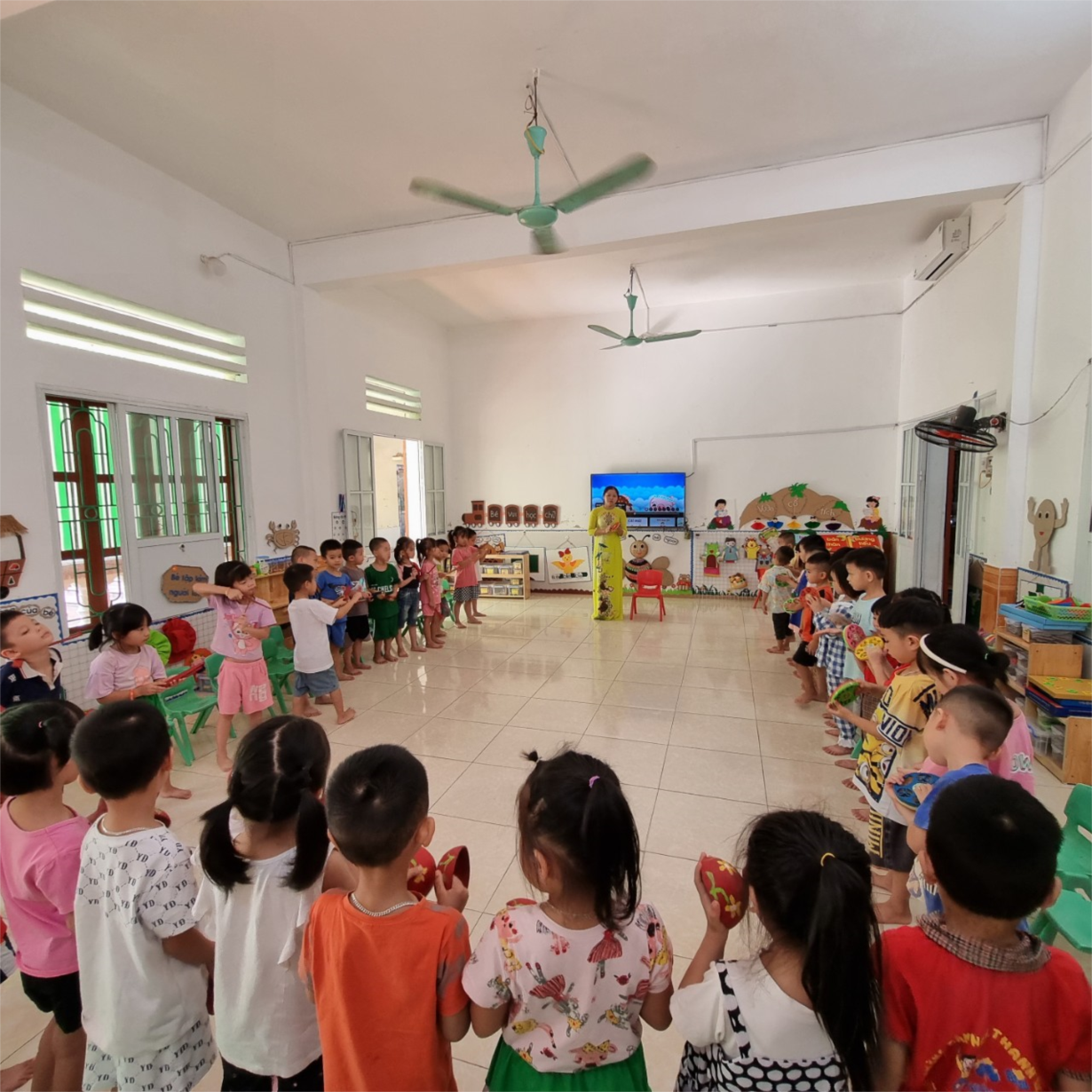 Sau đây là hình ảnh giờ học âm nhạc của lớp 5 tuổi 1 do cô Đoàn Thị Giang và cô Đỗ Anh Thư làm chủ nhiệm