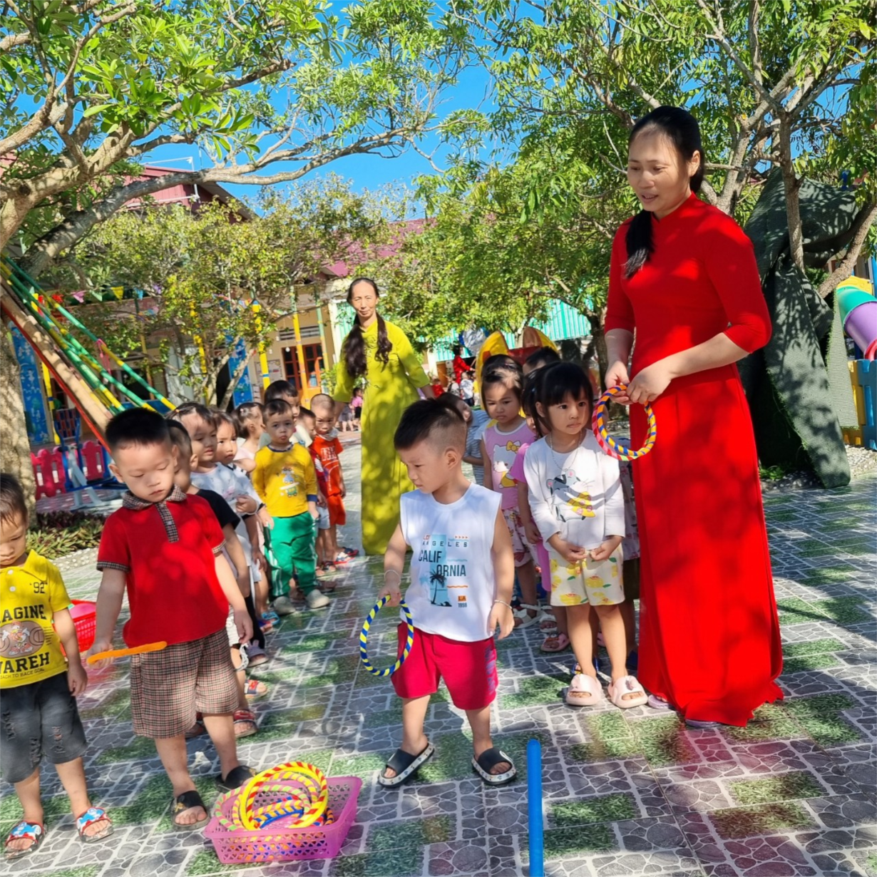 Trẻ em đến trường không chỉ cần được chăm sóc sức khỏe được học tập mà quan trọng nhất là được vui chơi… không những thế thông qua các hoạt động ngoài trời hàng ngày giúp trẻ chia sẻ niềm vui của mình với bạn bè, cộng đồng làm cho thế giới xung quanh của các bé đẹp hơn và rộng lớn hơn.