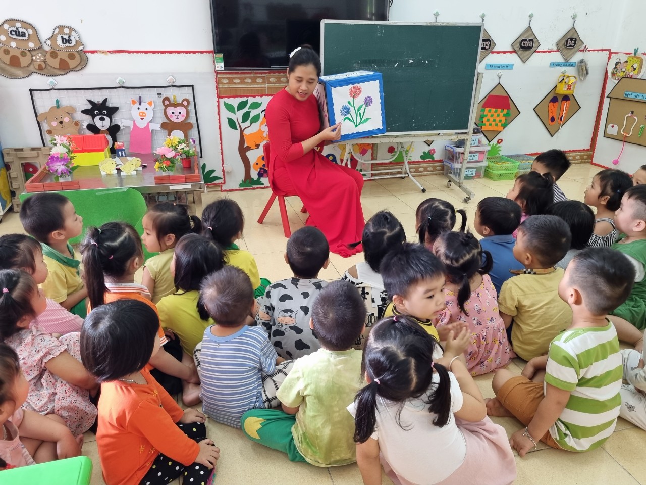Mỗi giáo viên tham gia một hoạt động hội giảng, các hoạt động được chuẩn bị rất chu đáo, có sự đầu tư về con người, phương tiện, đồ dùng, đồ chơi với mong muốn được chia sẻ niềm đam mê với môn học, sự tâm huyết với nghề dạy học và gây hứng thú cho trẻ. Thông qua hội giảng, giáo viên được thể hiện năng lực chuyên môn của bản thân, trao đổi, học hỏi kinh nghiệm của các bạn đồng nghiệp về đổi mới hình thức tổ chức các hoạt động giáo dục, vận dụng phương pháp giáo dục “lấy trẻ làm trung tâm”, ứng dụng phương pháp hiện đại, trẻ học qua chơi, học qua thực hành trải nghiệm...kết hợp sử dụng đồ dùng, đồ chơi, các phương tiện dạy học hiệu quả nhằm phát huy tính tích cực của trẻ. Sau mỗi hoạt động của giáo viên, cán bộ quản lý nhà trường và giáo viên thảo luận, rút kinh nghiệm để tìm ra các biện pháp tốt nhất truyền đạt đến trẻ một cách nhẹ nhàng mà lại hiệu quả.