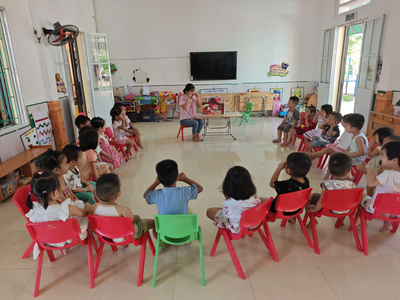 Khi nghe truyện, trẻ không chỉ rèn luyện khả năng chú ý, tưởng tượng mà còn phát triển ngôn ngữ. Trẻ học thêm nhiều từ mới, biết cách kể lại sự việc theo trình tự. Ngoài ra, việc cùng nhau trao đổi sau câu chuyện còn giúp trẻ bày tỏ cảm xúc: “Con thấy Minh Quân như thế nào?”, “Con có muốn làm 1 người dũng cảm không?”. Đây chính là cơ hội để trẻ rèn kỹ năng giao tiếp và tư duy.
