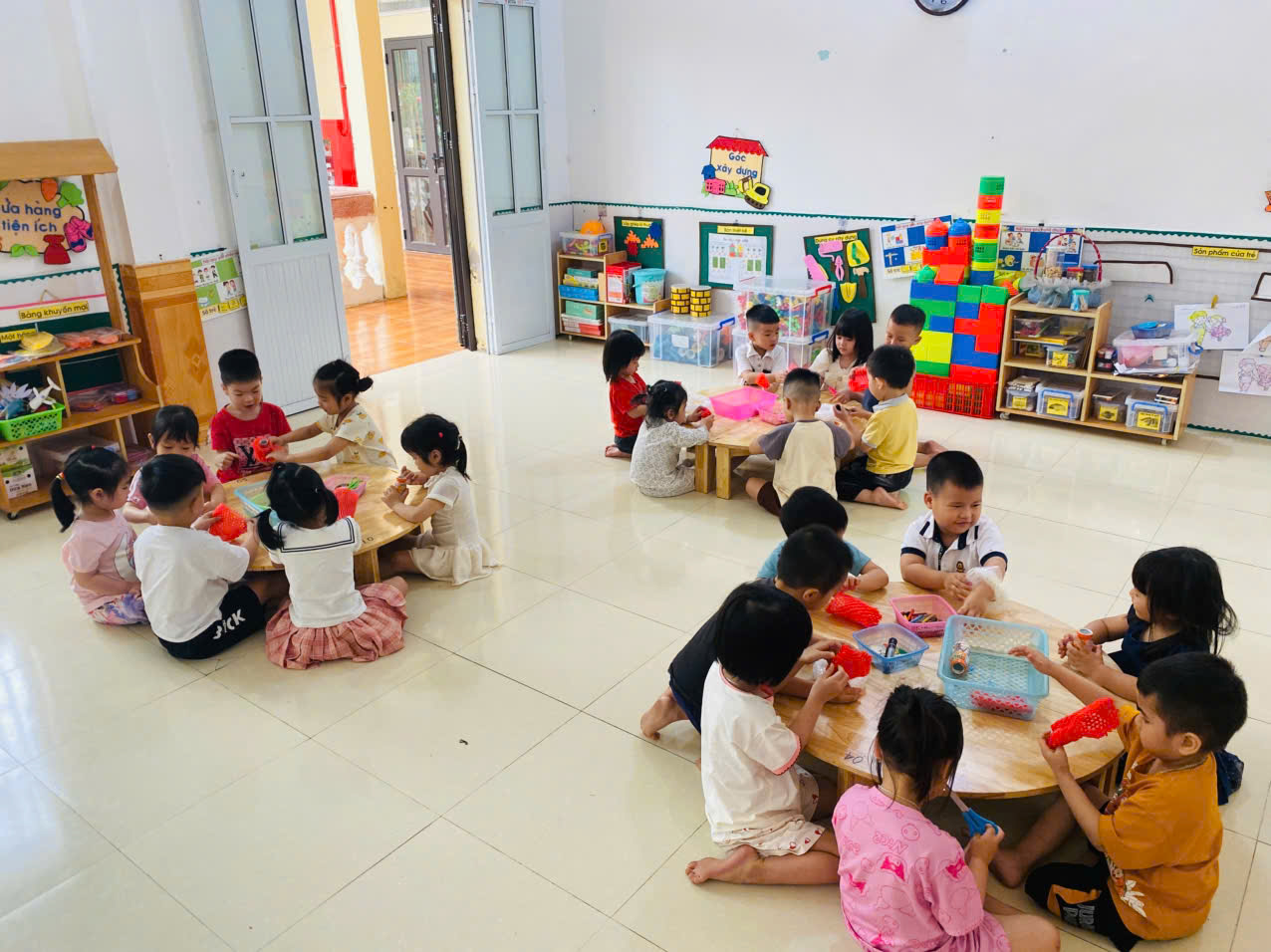 Bên cạnh đó, hoạt động còn giúp trẻ rèn kỹ năng hợp tác, giao tiếp khi làm việc cùng bạn, biết chia sẻ ý tưởng và lắng nghe người khác. Quan trọng hơn, trẻ cảm nhận được niềm vui khi tự tay tạo ra sản phẩm, từ đó hình thành sự tự tin, hứng thú học tập và tinh thần khám phá thế giới xung quanh.