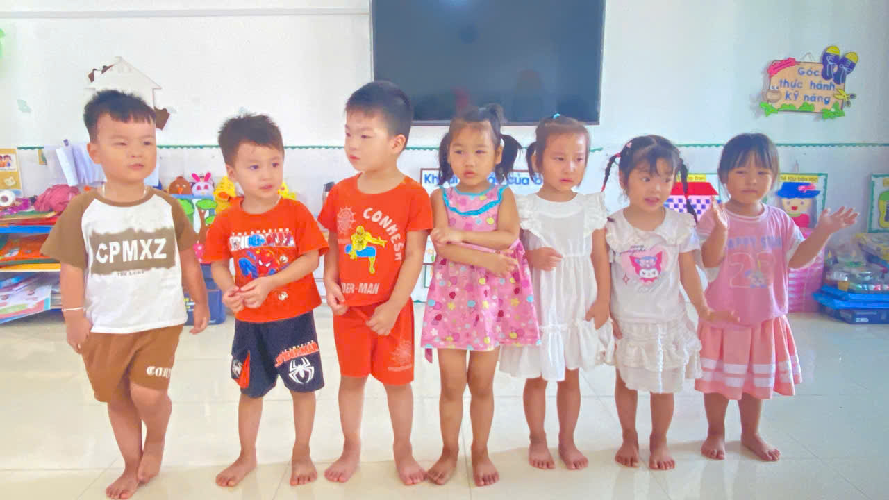 Quá trình dạy hát được tiến hành nhẹ nhàng, sinh động qua các bước: Cô cho trẻ nghe cô hát mẫu; cùng trò chuyện về nội dung; dạy trẻ hát từng câu; sau đó cho trẻ hát trọn vẹn bài theo nhạc. Cuối cùng, cô khuyến khích trẻ biểu diễn trước lớp để tăng sự tự tin và khả năng cảm thụ âm nhạc. Hoạt động không chỉ giúp trẻ phát triển ngôn ngữ, thẩm mỹ mà còn mang đến niềm vui, hứng khởi trong học tập.