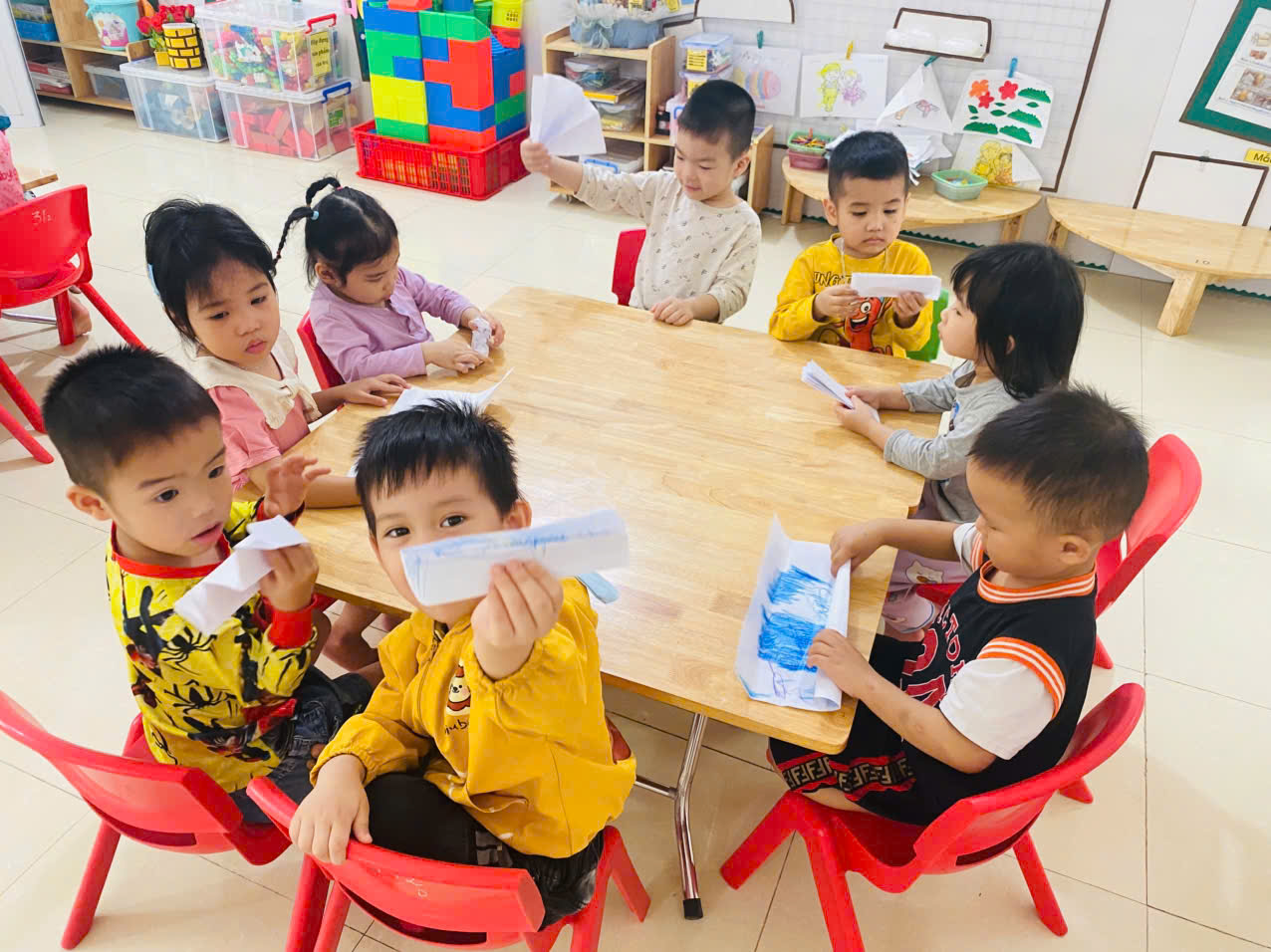 Bên cạnh đó, hoạt động còn giúp trẻ phát triển khả năng chú ý, ghi nhớ và làm theo hướng dẫn đơn giản của cô giáo. Khi hoàn thành chiếc quạt, trẻ cảm nhận được niềm vui và sự tự hào về sản phẩm của mình, từ đó hình thành sự tự tin.