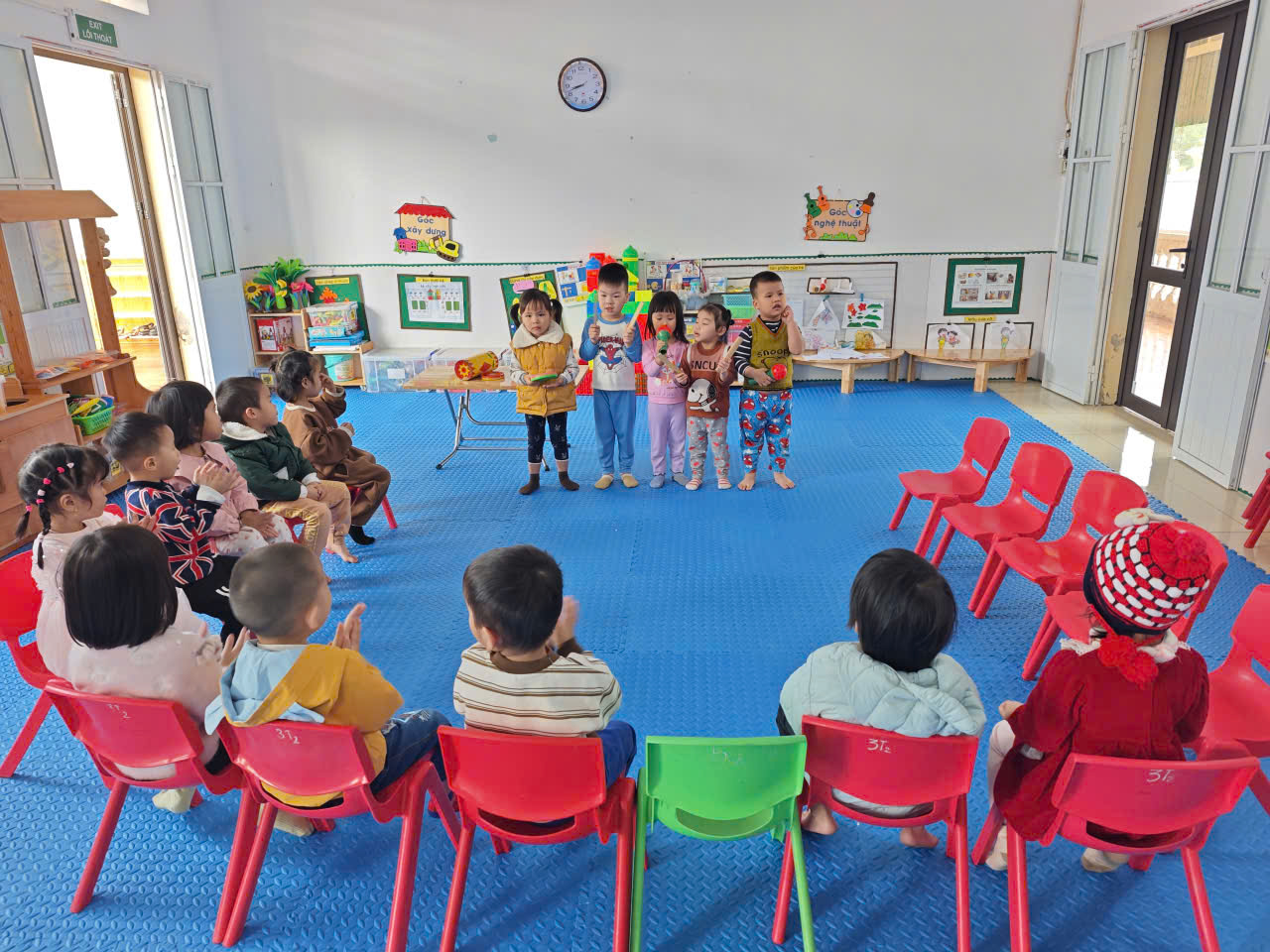 Khi hát, trẻ không chỉ rèn khả năng phát âm, nhịp điệu và sự tự tin, mà còn hiểu được hành vi đúng – sai trong đời sống hằng ngày. Trẻ biết bỏ rác đúng nơi quy định, giữ lớp học và sân chơi sạch đẹp. Ngoài ra, hoạt động ca hát còn tạo không khí vui tươi, giúp trẻ mạnh dạn thể hiện mình và gắn kết với bạn bè.