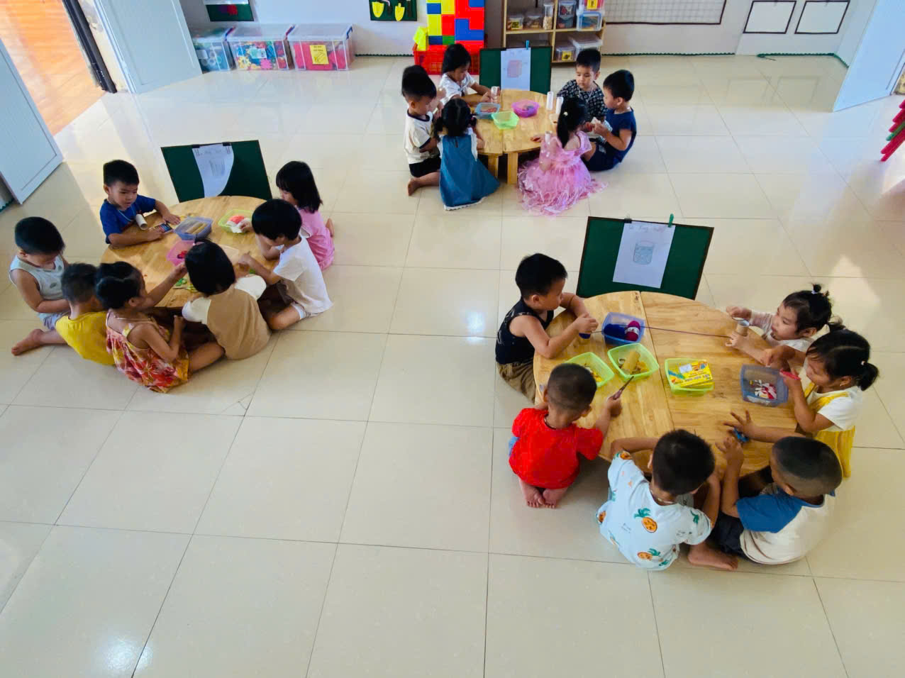 Từ những nguyên nhiên liệu không sử dụng nữa có trong lớp học, gia đình, lõi giấy vệ sinh, len, giấy màu, keo,....và sự hợp tác, làm việc nhóm của các con lớp 3 tuổi 1. Các con đã làm ra những lọ đựng bút xinh xinh theo bản thiết kế mà nhóm trẻ chọn.