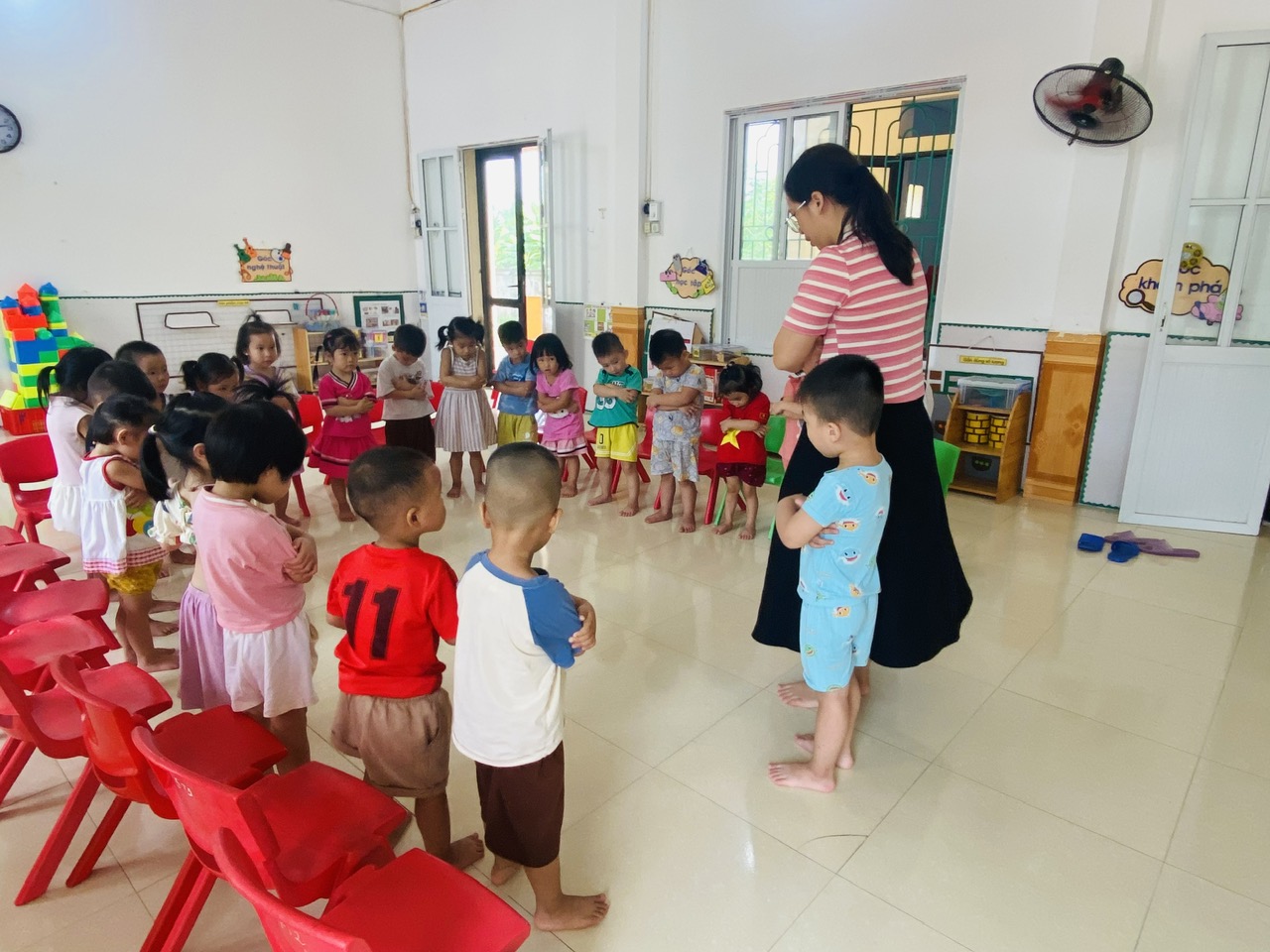 Ảnh 2: Các con chơi trò chơi rèn kĩ năng chào hỏi