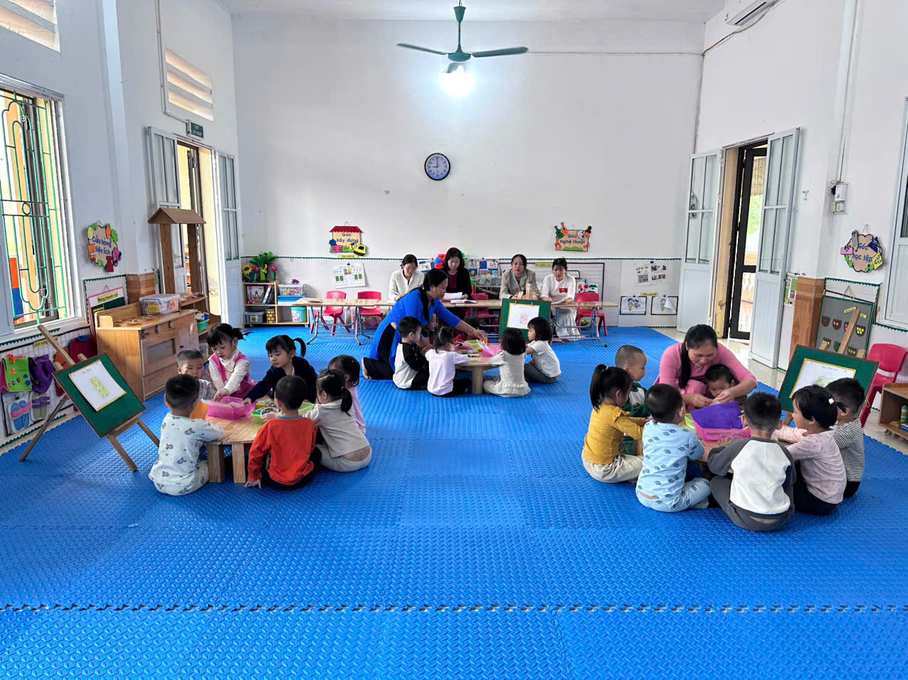 - Cô chia trẻ về hoạt động tại nhóm.