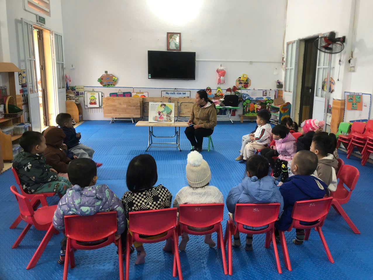 - Cô cho trẻ đọc thuộc bài thơ.