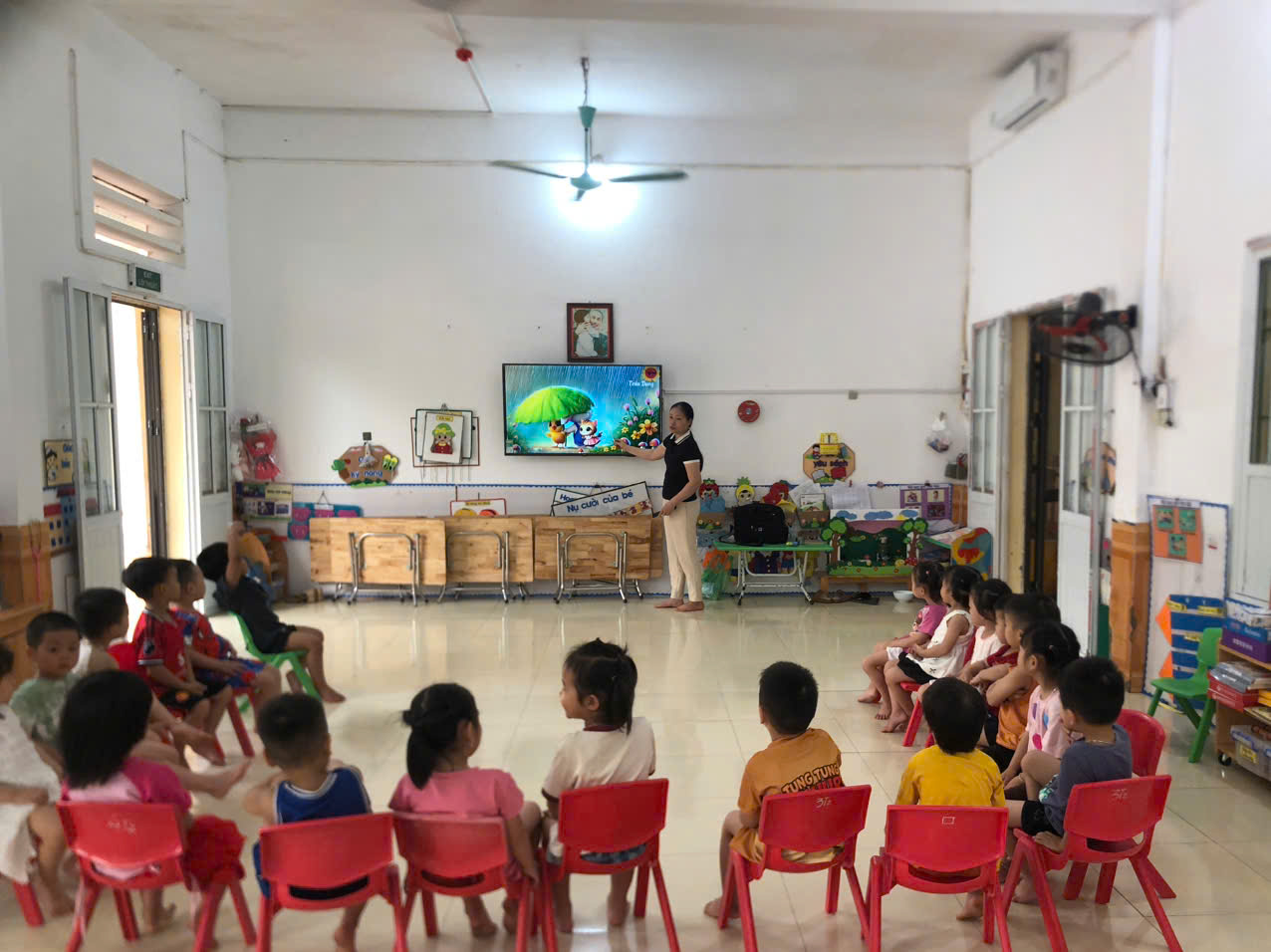 - Cô cho trẻ xem video truyện "Chiếc ô của thỏ trắng"