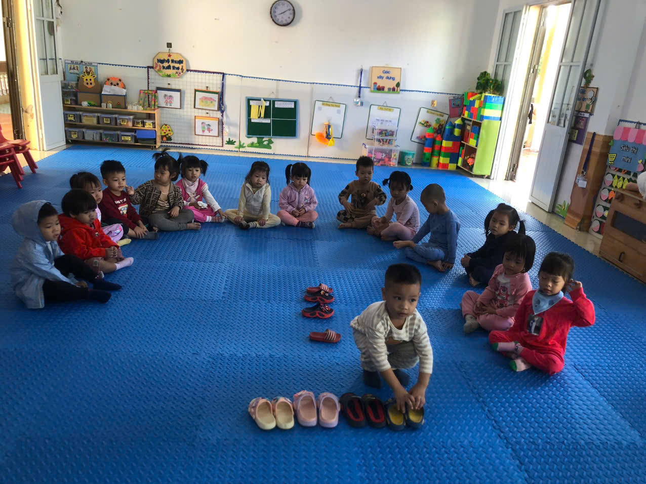 - Cô cho trẻ cất đồ chơi vào rổ, vừa cất vừa đếm xem mình có mấy đôi