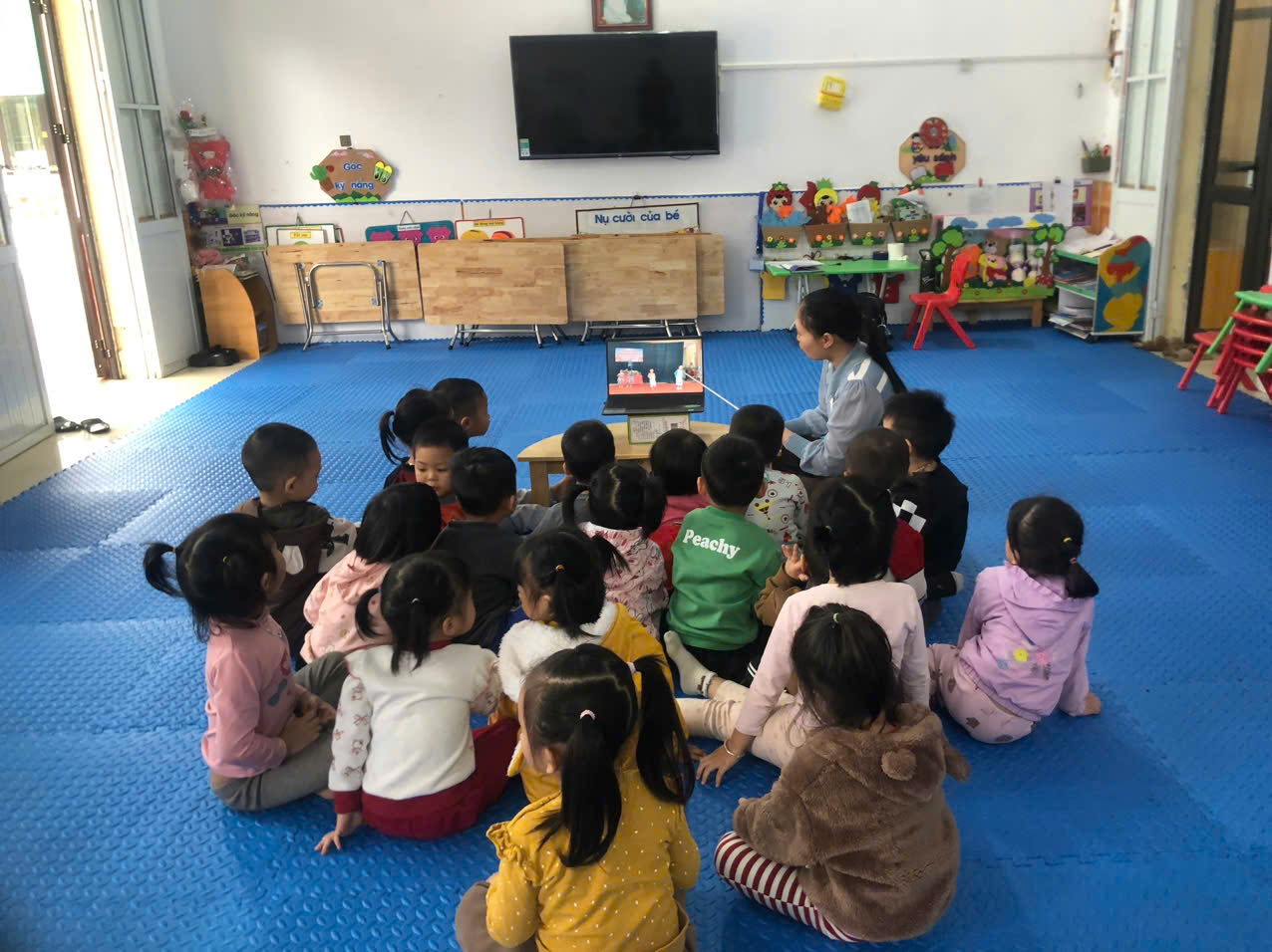 - Cô chia trẻ về các nhóm để trẻ cùng nhau khám phá, thảo luận về giấy