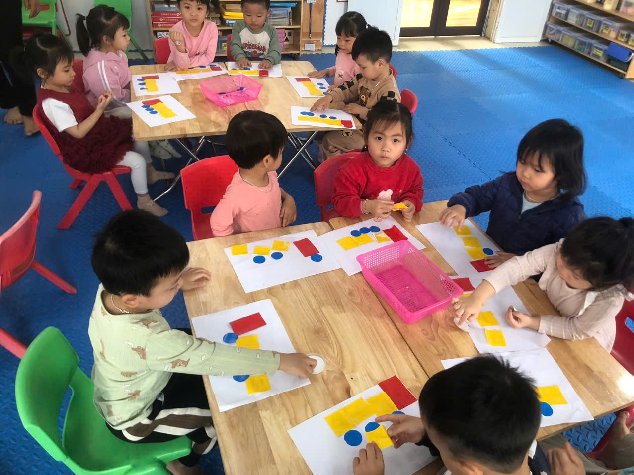 Ảnh các bé lớp 3 tuổi 2 dán tàu hoả