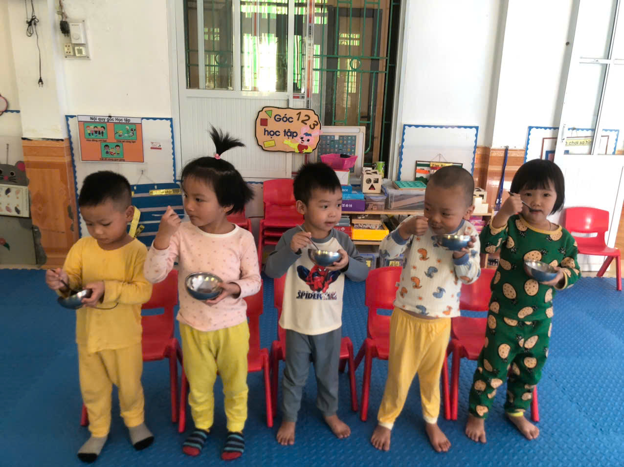 Ảnh các bé lớp 3T2 sử dụng bát thìa.