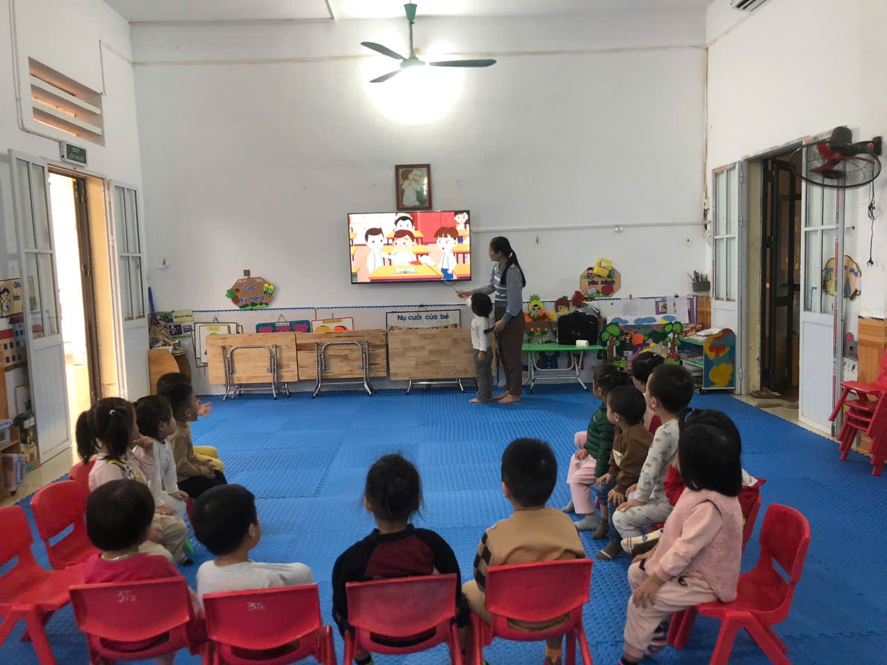 - Cô dạy trẻ nói lời cảm ơn xin lỗi với các tình huống cô đưa ra.