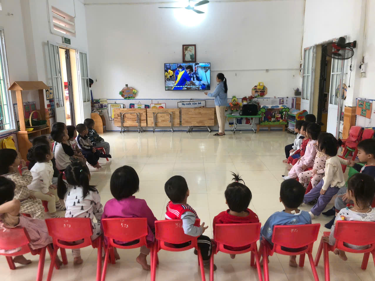 - Cô cho trẻ xem video công việc của bố khi đi làm vất vả giữa trời nắng, mưa.