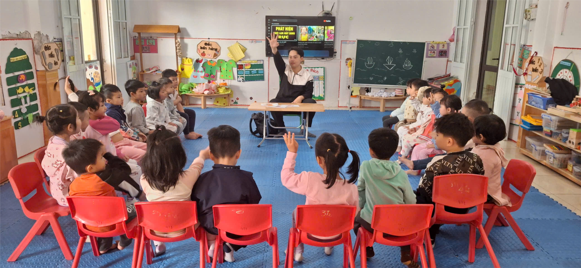 ( Hình ảnh thầy giáo đang đếm số cùng trẻ)