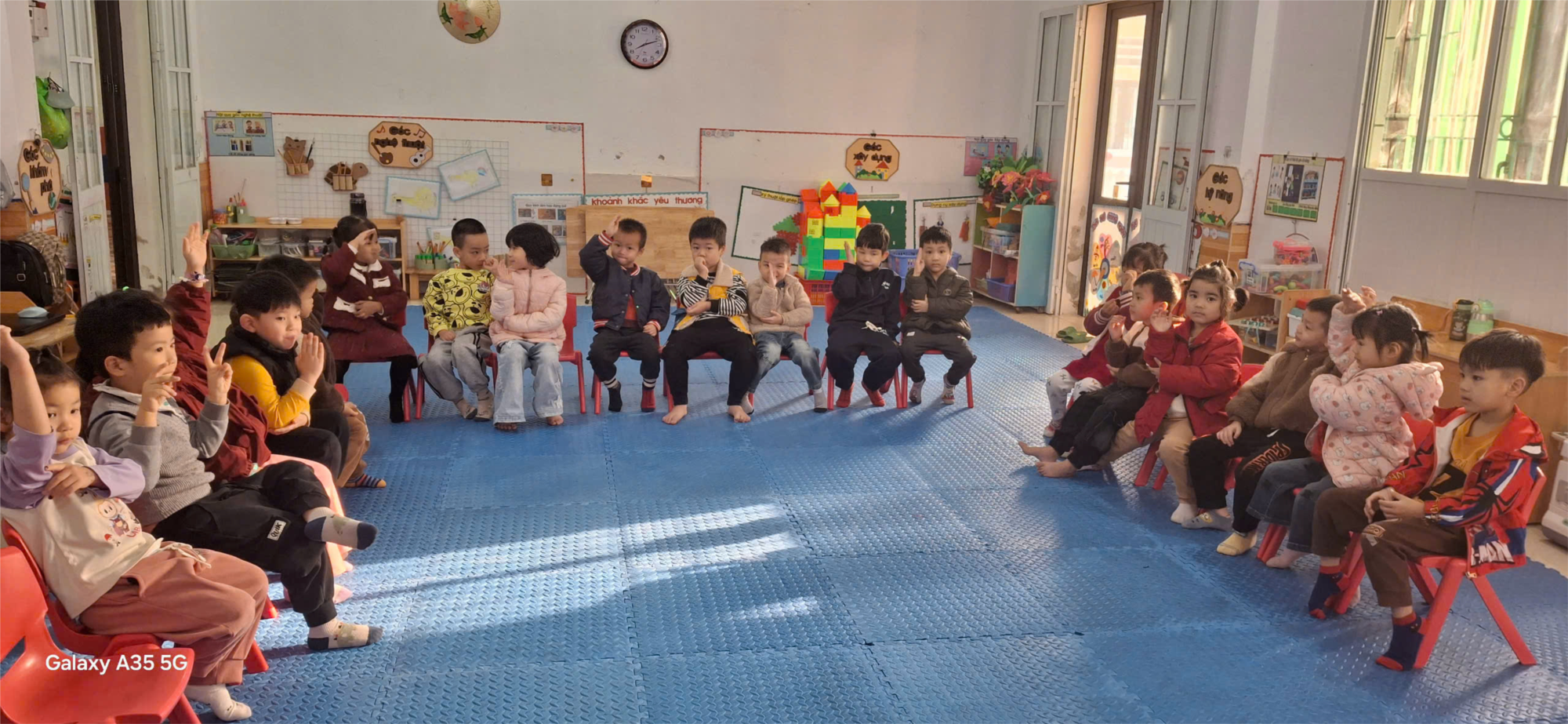 Không khí giờ học diễn ra nhẹ nhàng, lôi cuốn, giúp trẻ biết lắng nghe, chờ đến lượt nói và tôn trọng ý kiến của bạn. Qua đó, trẻ không chỉ phát triển ngôn ngữ mà còn hình thành những kỹ năng xã hội cần thiết.