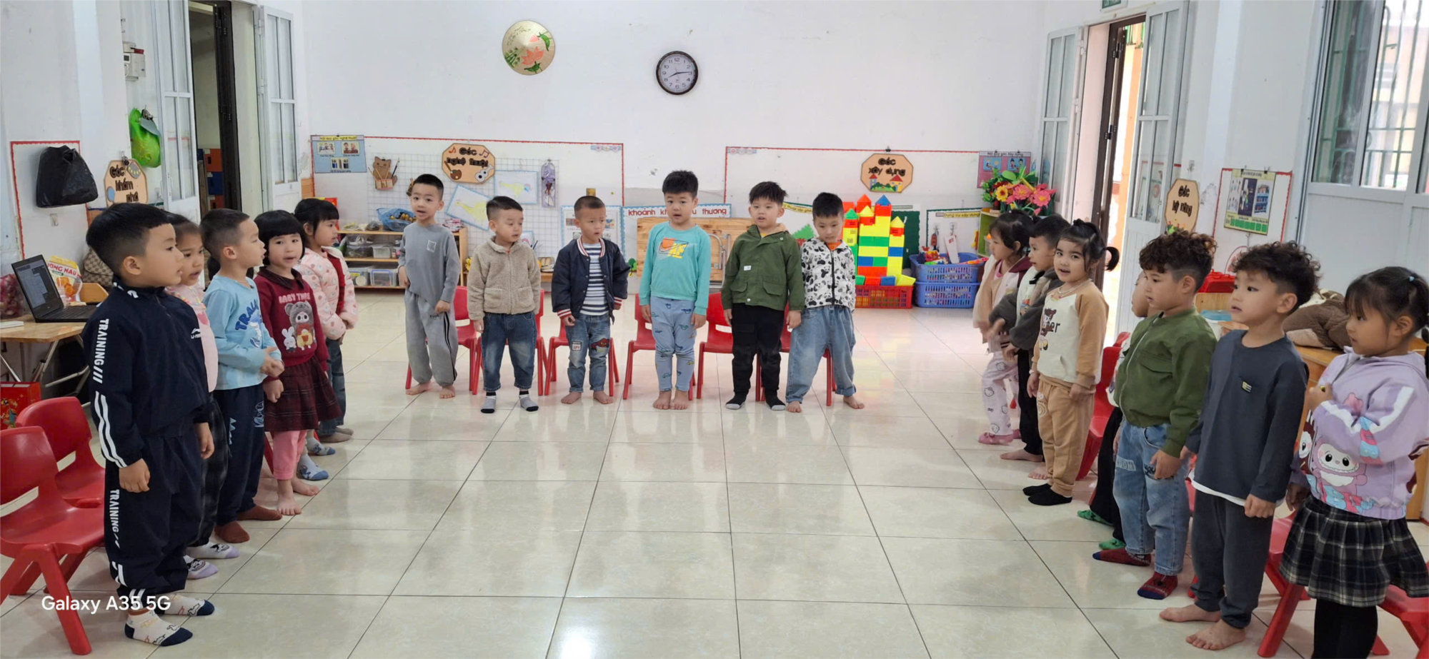 Trong quá trình luyện đọc, trẻ được hướng dẫn đọc to, rõ lời, đúng nhịp điệu. Nhiều bé mạnh dạn xung phong đọc cá nhân, thể hiện sự tự tin và khả năng ghi nhớ tốt. Không khí lớp học diễn ra vui tươi, nhẹ nhàng, giúp trẻ hứng thú với hoạt động làm quen văn học.