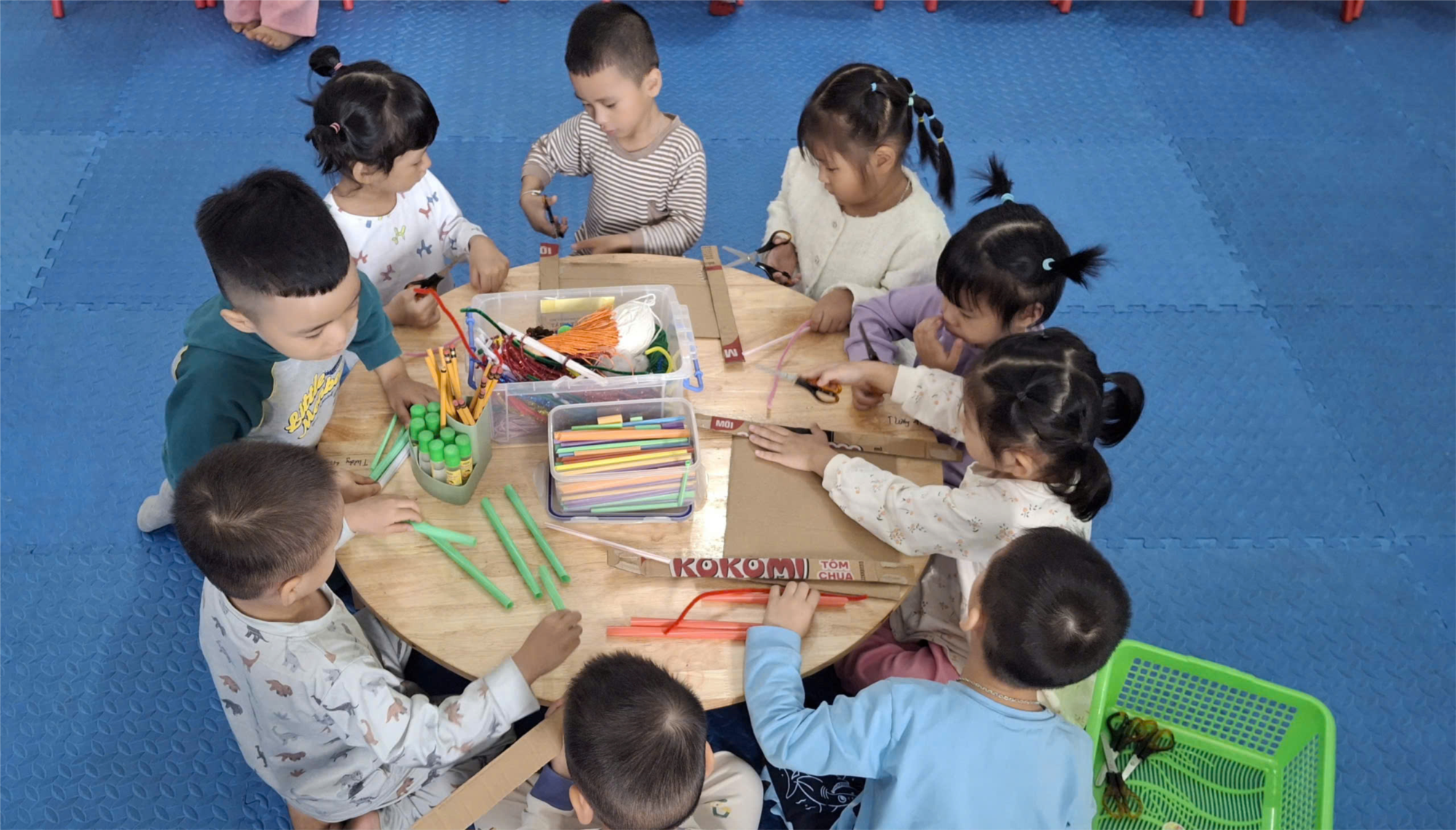 Thông qua hoạt động “Làm khung ảnh (EDP)”, trẻ được phát triển khả năng thẩm mỹ, óc sáng tạo và tinh thần hợp tác. Đây cũng là dịp để cô giáo giáo dục trẻ về tình cảm gia đình, tình yêu thương qua những bức ảnh thân quen. Giờ học khép lại với niềm vui trọn vẹn, khi mỗi bé đều mang về cho mình một khung ảnh xinh xắn – món quà nhỏ chứa đựng niềm tự hào và sự khéo léo của đôi bàn tay trẻ thơ.