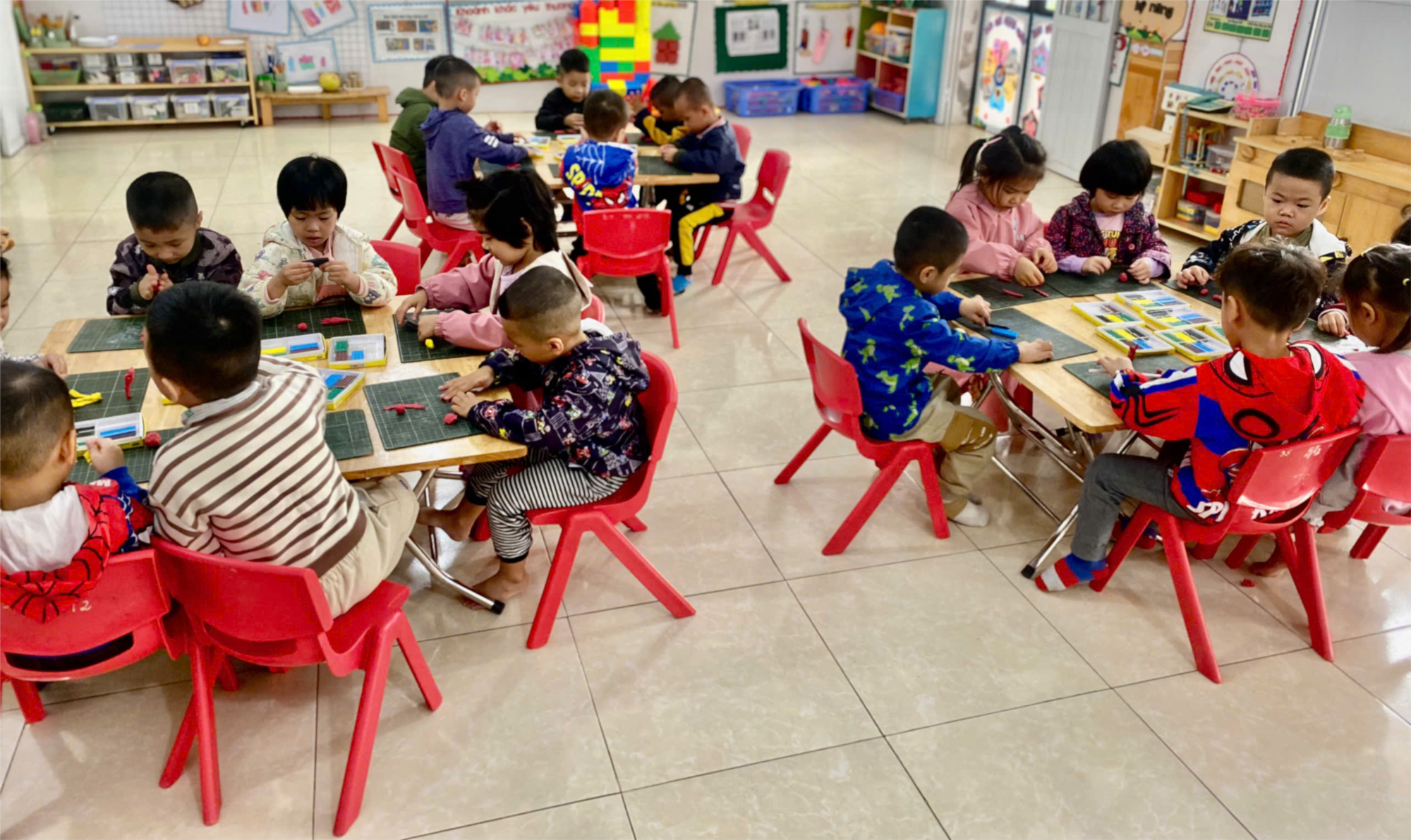 Trong quá trình nặn, các bé rất chăm chú và hào hứng, mỗi sản phẩm đều mang nét riêng biệt, thể hiện cảm xúc và cá tính của từng trẻ. Có bé nặn các bộ phân trên cơ thể, có bé lại nặn bạn trai bạn gái, hoặc đơn giản là gương mặt cười rạng rỡ. Cô giáo nhẹ nhàng quan sát, động viên và khuyến khích trẻ sáng tạo, giúp trẻ tự tin thể hiện ý tưởng và cảm xúc qua tác phẩm của mình.