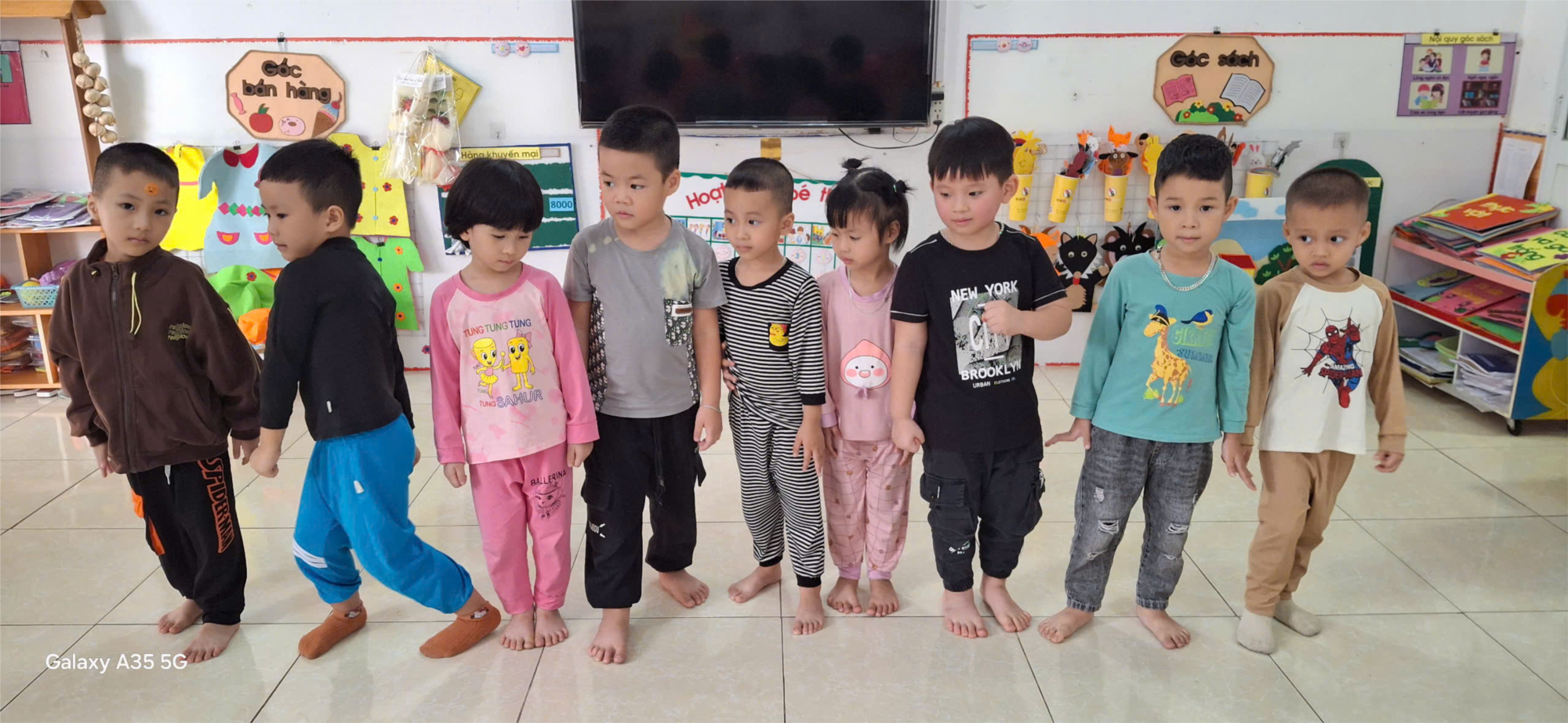 Cô giáo khéo léo tổ chức hoạt động dưới nhiều hình thức như hát theo cô, hát nối tiếp, hát theo nhóm và thi đua giữa các tổ. Các bé vừa hát vừa vận động minh họa, thể hiện niềm vui, sự tự tin và gắn bó với bạn bè. Tiếng hát trong trẻo, hồn nhiên của các con vang lên trong lớp học, tạo nên không khí tươi vui, ấm áp và tràn đầy năng lượng tích cực.