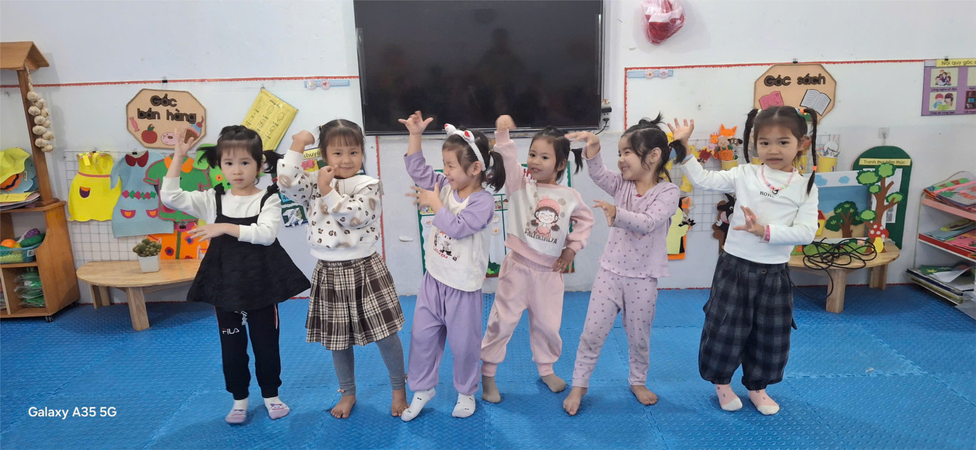 Trong quá trình dạy học, giáo viên đã linh hoạt sử dụng các phương pháp phù hợp với lứa tuổi như làm mẫu vận động, hướng dẫn theo từng động tác kết hợp nhạc nền “Cháu hát về đảo xa” và trò chơi âm nhạc “Tình yêu chiến sĩ”. Trẻ hứng thú tham gia, vận động nhịp nhàng, mạnh dạn thể hiện cảm xúc qua từng động tác múa.
