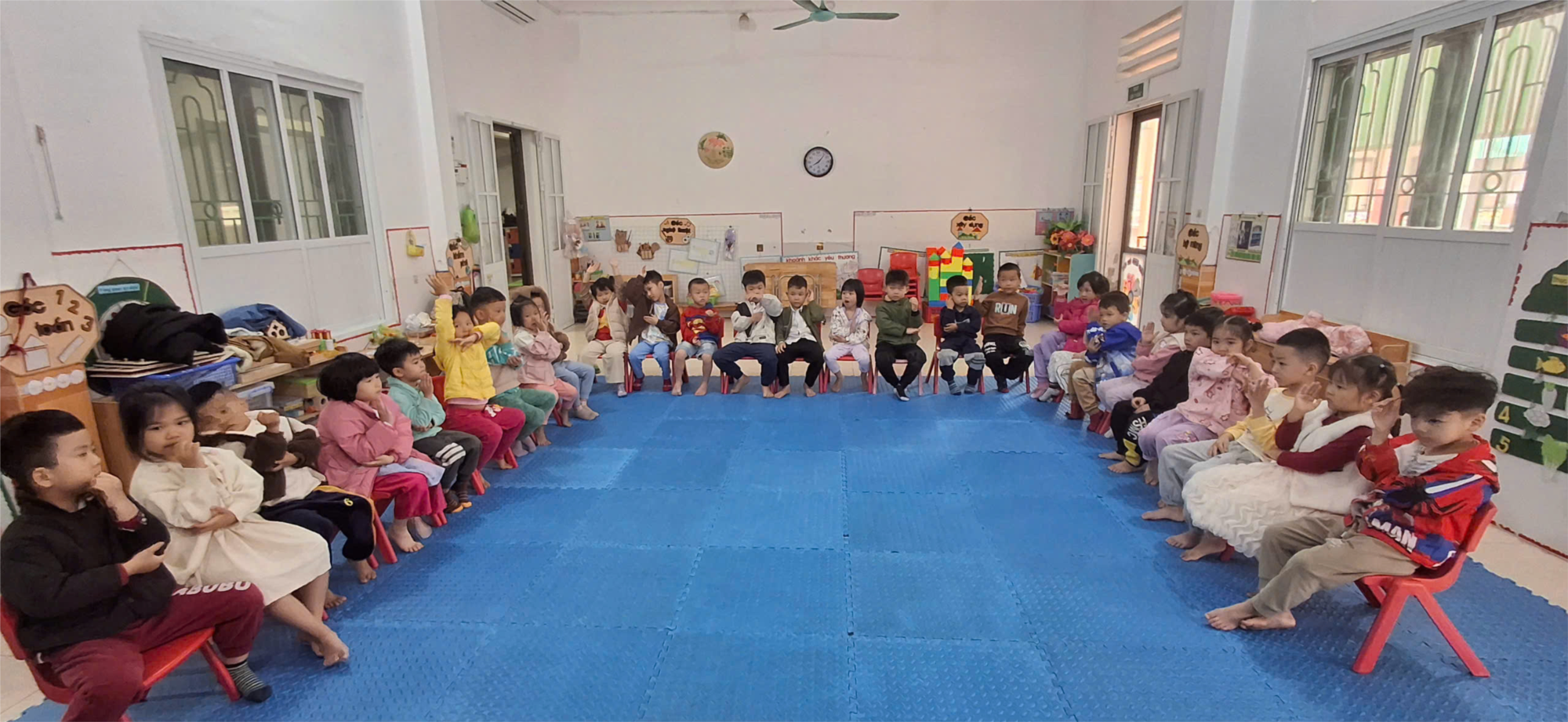 Hoạt động còn giúp trẻ hình thành những hành vi văn minh như biết chờ đến lượt, không chen lấn, biết nhắc nhở người thân chấp hành luật giao thông. Không khí lớp học diễn ra sôi nổi, vui tươi, tạo sự hứng thú và giúp trẻ mạnh dạn, tự tin thể hiện bản thân.