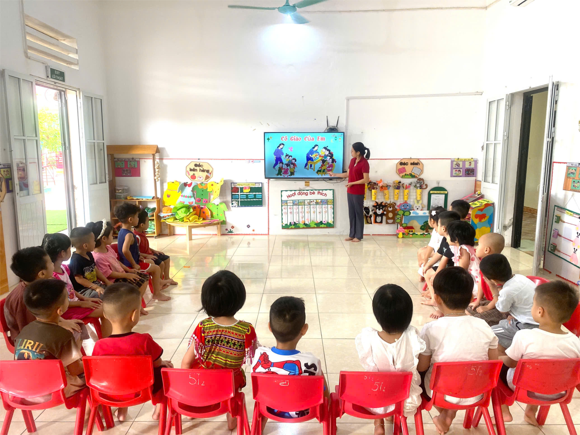 Qua giọng đọc truyền cảm và sự hướng dẫn tận tình của cô giáo, các bé được làm quen với nhịp điệu, vần điệu của bài thơ, biết đọc to – rõ ràng, kết hợp ngữ điệu phù hợp. Không chỉ giúp trẻ phát triển ngôn ngữ, khả năng ghi nhớ, sự tự tin trước tập thể, mà bài thơ còn nuôi dưỡng trong tâm hồn các con tình cảm kính yêu, biết ơn thầy cô giáo – những người chăm sóc, dạy dỗ hằng ngày.