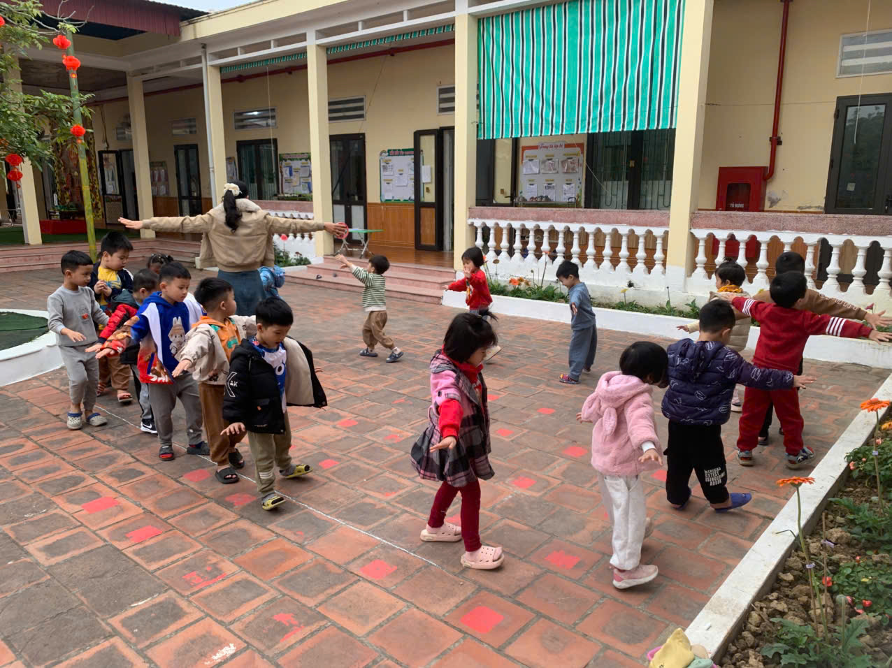 Tiết học thể dục “Ném xa bằng một tay” được tổ chức sôi nổi và phù hợp với lứa tuổi mầm non. Trẻ được khởi động nhẹ nhàng với các động tác tay, chân và toàn thân trước khi vào bài tập chính. Cô giáo hướng dẫn và làm mẫu kỹ năng ném xa bằng một tay rõ ràng, nhấn mạnh tư thế đứng, cách cầm túi cát, đưa tay ra sau và ném mạnh về phía trước. Trẻ lần lượt thực hiện, đa số trẻ ném đúng kỹ thuật, mạnh dạn và hào hứng tham gia. Cuối giờ, trẻ được chơi trò chơi vận động nhẹ và thực hiện hồi tĩnh giúp cơ thể thư giãn.