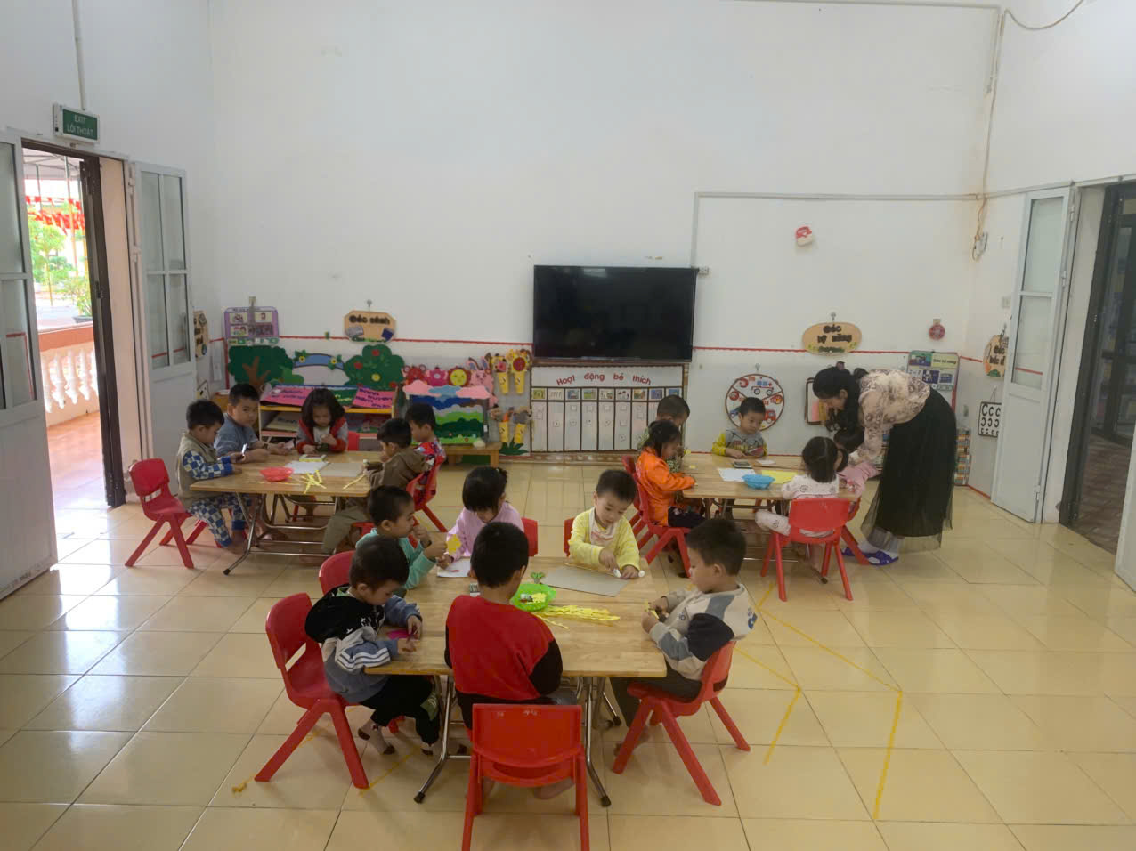 rong ảnh, có thể thấy những khung ảnh xinh xắn do chính tay trẻ tạo ra từ các nguyên vật liệu khác nhau như bìa cứng, que gỗ, ruy băng, giấy màu… Mỗi sản phẩm mang một ý tưởng riêng, được trang trí với nhiều màu sắc tươi sáng và họa tiết dễ thương như hoa, lá....
