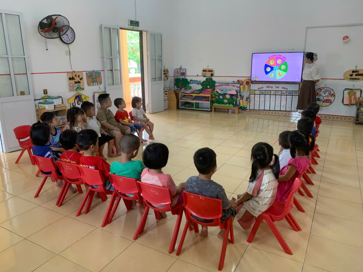 rong hoạt động “Trẻ biểu lộ cảm xúc vui, buồn của bản thân”, cô giúp trẻ nhận biết và thể hiện được hai cảm xúc cơ bản là vui và buồn thông qua trò chuyện, quan sát tranh ảnh, video và các trò chơi đóng vai. Trẻ được chia sẻ những tình huống khiến mình cảm thấy vui hay buồn, biết gọi tên cảm xúc của bản thân và thể hiện bằng nét mặt, cử chỉ, lời nói phù hợp. Qua đó, trẻ học cách nhận biết cảm xúc của người khác, biết quan tâm, chia sẻ và ứng xử nhẹ nhàng khi bạn buồn, cùng chung vui khi bạn hạnh phúc, góp phần phát triển năng lực cảm xúc – xã hội (SEL) một cách tự nhiên và tích cực.