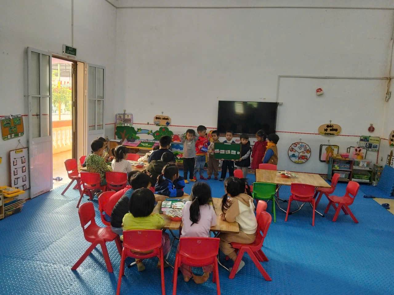 Trong quá trình học số 4, trẻ được quan sát tình huống có bốn đối tượng để khởi động và nhận biết số lượng. Trẻ thực hành đếm bằng thao tác chạm – đếm, sau đó tự xếp thành nhóm gồm 4 đồ vật theo hướng dẫn của cô. Tiếp đó, trẻ học cách nhận biết và đọc số “4”, ghép số với nhóm đối tượng tương ứng và so sánh nhóm có 4 với nhóm nhiều hơn hoặc ít hơn. Trẻ được tham gia các trò chơi củng cố như tìm đồ vật có số lượng 4 trong lớp hoặc gắn thẻ số 4 đúng vị trí. Cuối cùng, cô quan sát, nhận xét và đánh giá khả năng đếm, nhận biết và ghi nhớ số 4 của trẻ.