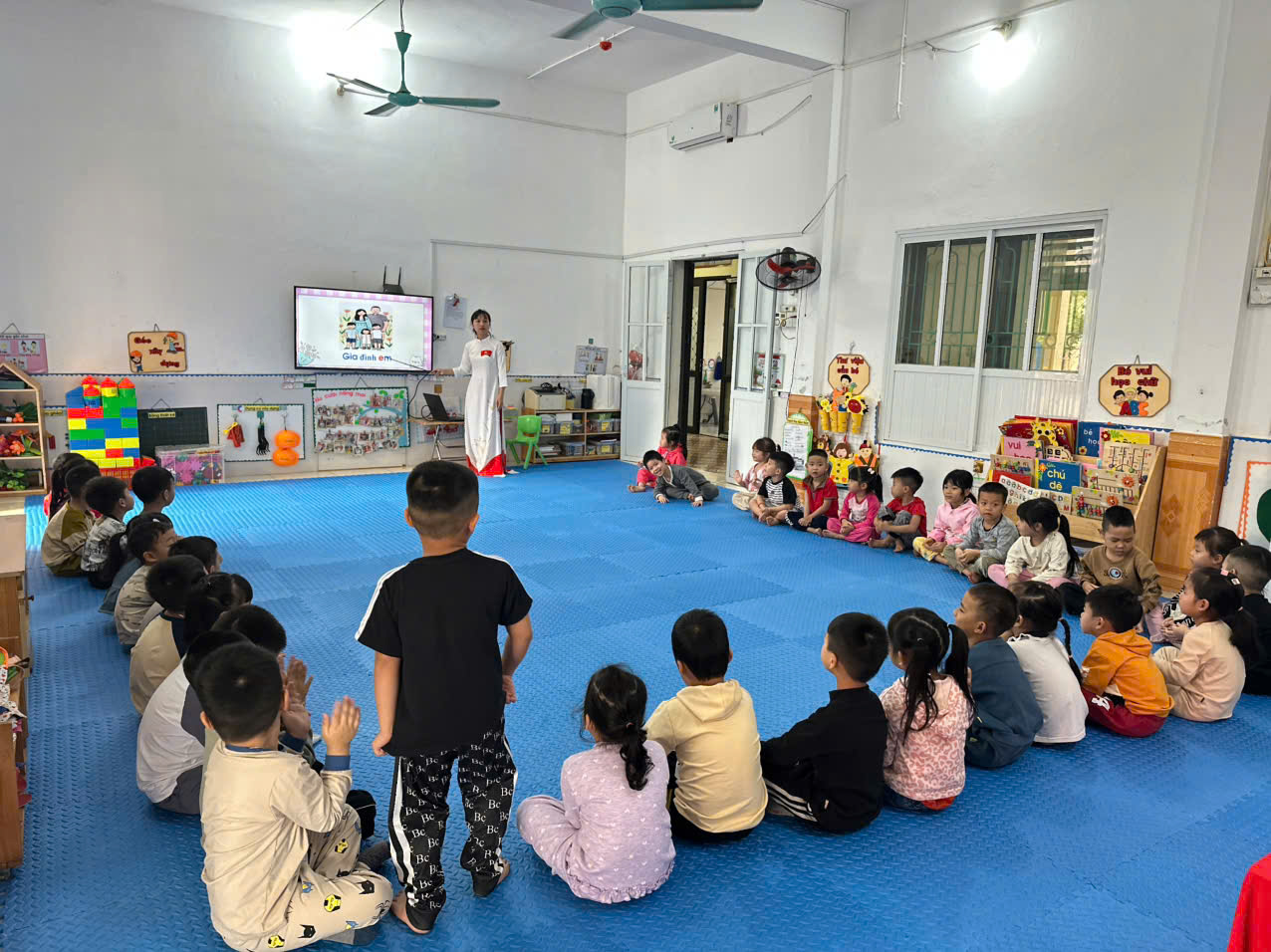 Các bé hăng say giơ tay phát biểu, mạnh dạn nêu ý kiến khi cô đưa ra câu hỏi về chữ cái e, ê. Không khí lớp học trở nên sôi nổi khi từng trẻ tự tin trình bày suy nghĩ của mình. Sự chủ động của các bé đã góp phần làm cho tiết học thêm sinh động và đầy hứng khởi.