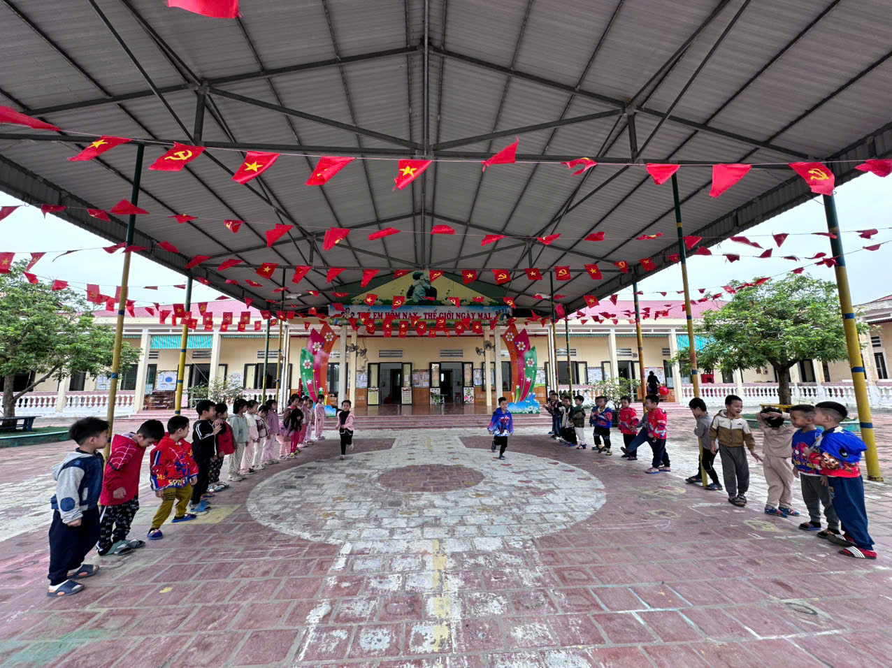 Các bé hào hứng tham gia hoạt động chạy thay đổi hướng theo hiệu lệnh ở ngoài sân trường. Khi nghe tiếng còi hoặc hiệu lệnh của cô, trẻ nhanh nhẹn đổi hướng, chạy đúng hướng dẫn với tinh thần vui tươi, phấn khởi. Hoạt động diễn ra sôi nổi, giúp các bé rèn luyện phản xạ, tăng cường sức khỏe và sự khéo léo của cơ thể.