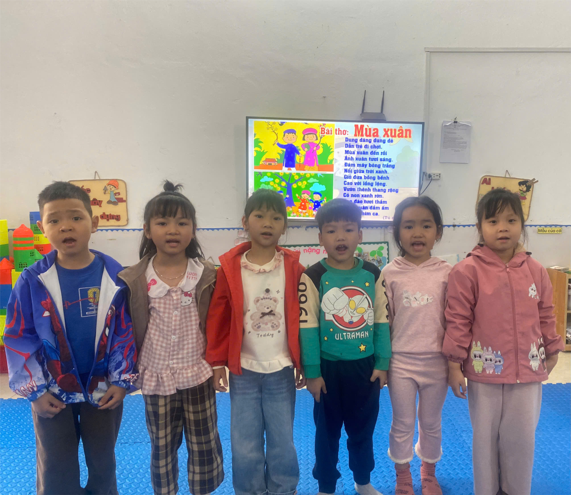 Các nhóm trẻ hăng hái thi đua nhau đọc thơ với tinh thần vui tươi và đầy hào hứng. Mỗi nhóm đều cố gắng thể hiện giọng đọc rõ ràng, diễn cảm và đồng đều. Không khí lớp học trở nên sôi nổi khi các bạn chăm chú lắng nghe và cổ vũ cho nhau. Hoạt động thi đua giúp trẻ thêm tự tin và gắn kết trong tập thể.
