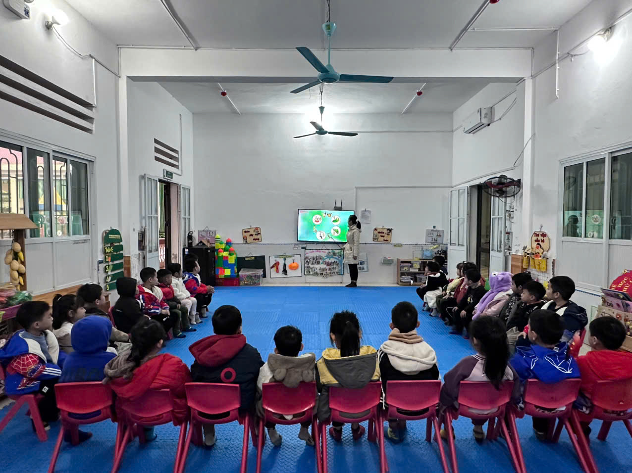 Trong hoạt động, trẻ chăm chú quan sát cô hướng dẫn từng bước một cách rõ ràng, sinh động. Trẻ lắng nghe, theo dõi kỹ các thao tác của cô và mạnh dạn đặt câu hỏi khi chưa hiểu. Qua đó, trẻ tiếp thu kiến thức hiệu quả và sẵn sàng tham gia vào các hoạt động tiếp theo.