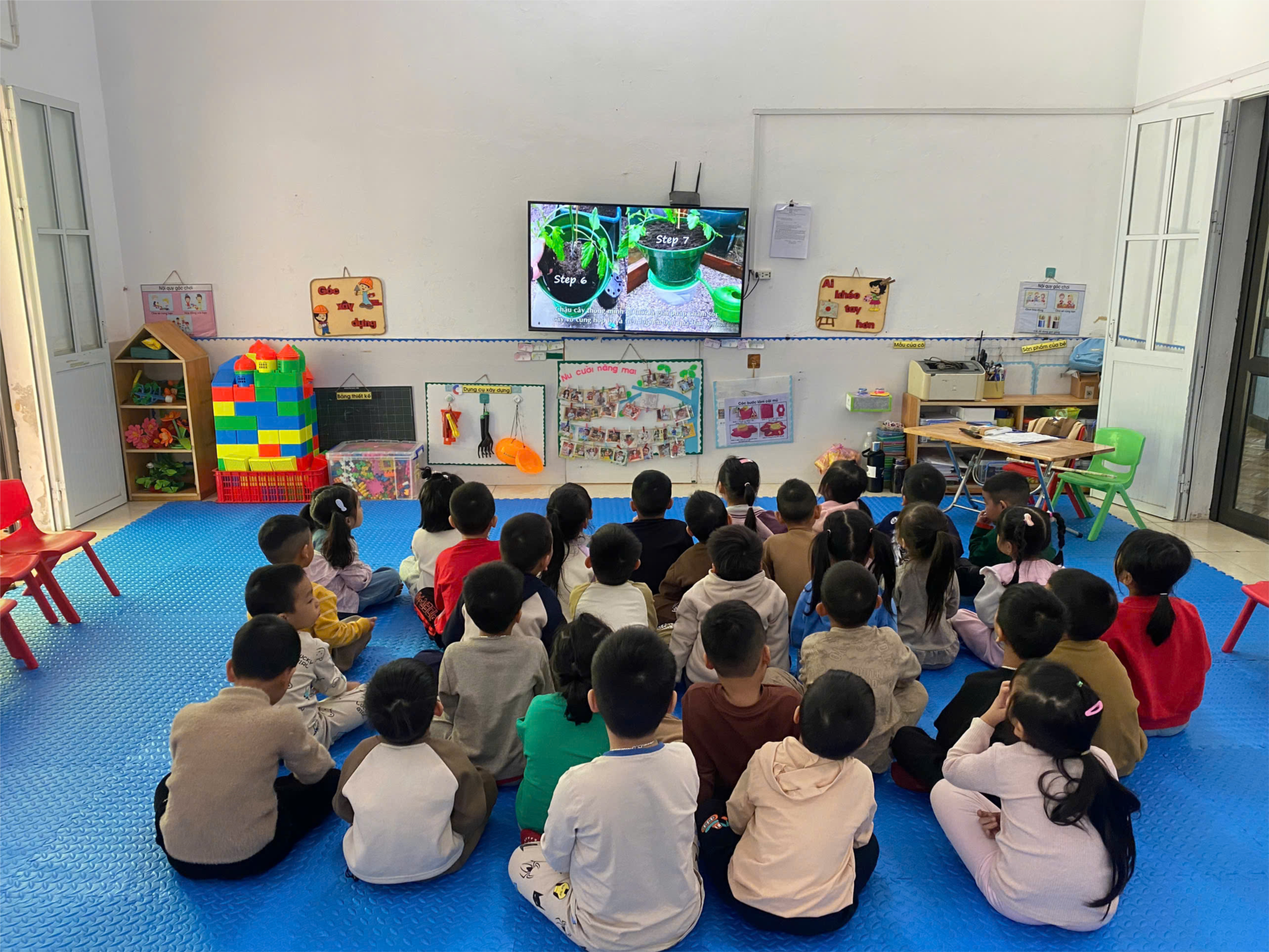 Các bé chăm chú quan sát từng bước chế tạo chậu cây thông minh, từ việc lắp cảm biến đến nối các dây dẫn. Mỗi chi tiết mới được giới thiệu đều khiến trẻ thích thú và đặt nhiều câu hỏi. Không khí lớp học trở nên sôi nổi khi các bé cùng nhau khám phá cách công nghệ giúp chăm sóc cây xanh hiệu quả hơn.