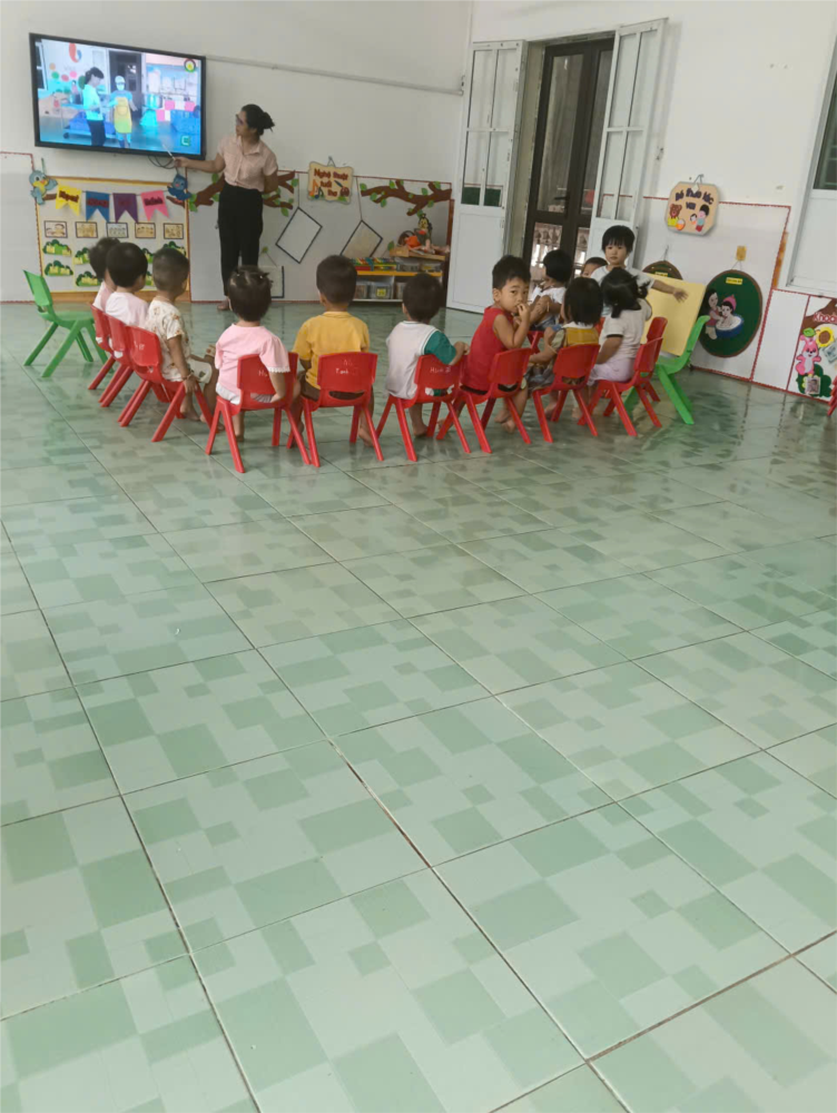 cô cấp dưỡng, trẻ được cô giáo trò chuyện gợi mở, giới thiệu hình ảnh và công việc hằng ngày của cô trong bếp ăn. Tiếp đó, trẻ được quan sát, lắng nghe câu chuyện về sự chăm sóc, chuẩn bị bữa ăn cho các con. Cô giáo khuyến khích trẻ trả lời câu hỏi, chia sẻ cảm nhận và học cách nói lời cảm ơn. Qua tiến trình này, trẻ không chỉ phát triển ngôn ngữ mà còn hình thành tình cảm yêu quý, trân trọng những người chăm sóc mình