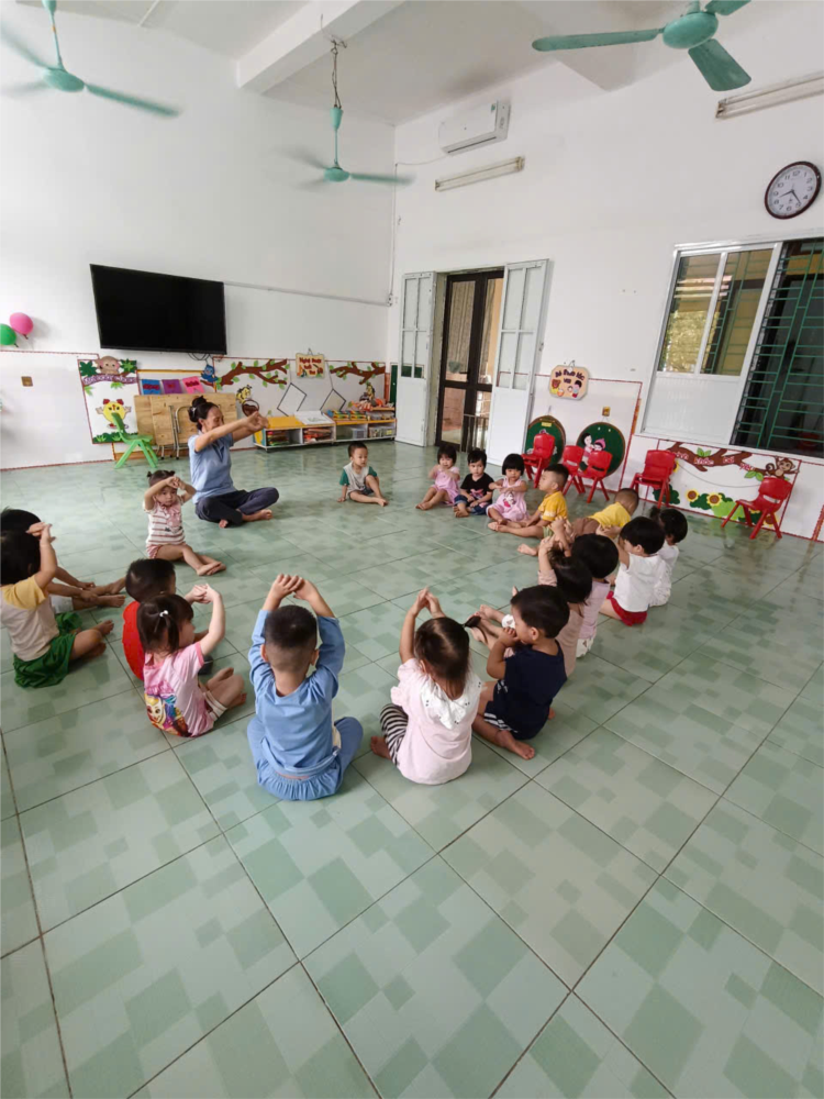 Trong giờ học vận động “Co duỗi đan ngón tay”, cô giáo nhẹ nhàng trò chuyện, tạo hứng thú cho trẻ bằng những câu hát quen thuộc. Trẻ hào hứng quan sát cô làm mẫu và cùng nhau thực hiện các động tác co, duỗi, đan các ngón tay nhịp nhàng theo nhạc. Hoạt động diễn ra sôi nổi, vui tươi giúp trẻ rèn luyện sự khéo léo, linh hoạt của đôi bàn tay và thêm yêu thích vận động mỗi ngày.