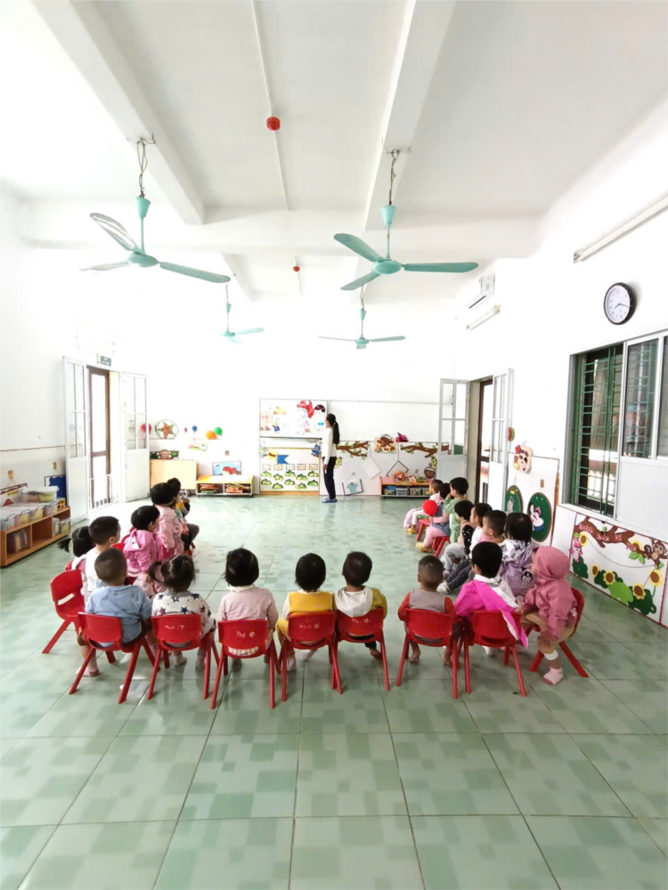 “Chia đồ chơi” được cô giáo tổ chức nhẹ nhàng, hấp dẫn. Mở đầu, cô trò chuyện cùng trẻ về đồ chơi quen thuộc và thói quen chơi với bạn. Sau đó, cô đọc mẫu bài thơ, đọc cùng tranh minh họa trên màn hình. sau đó cô hướng dẫn trẻ đọc theo nhịp điệu, giọng điệu tự nhiên. Trẻ chăm chú luyện đọc, rồi cùng cô đàm thoại về ý nghĩa biết chia sẻ, đoàn kết cùng
