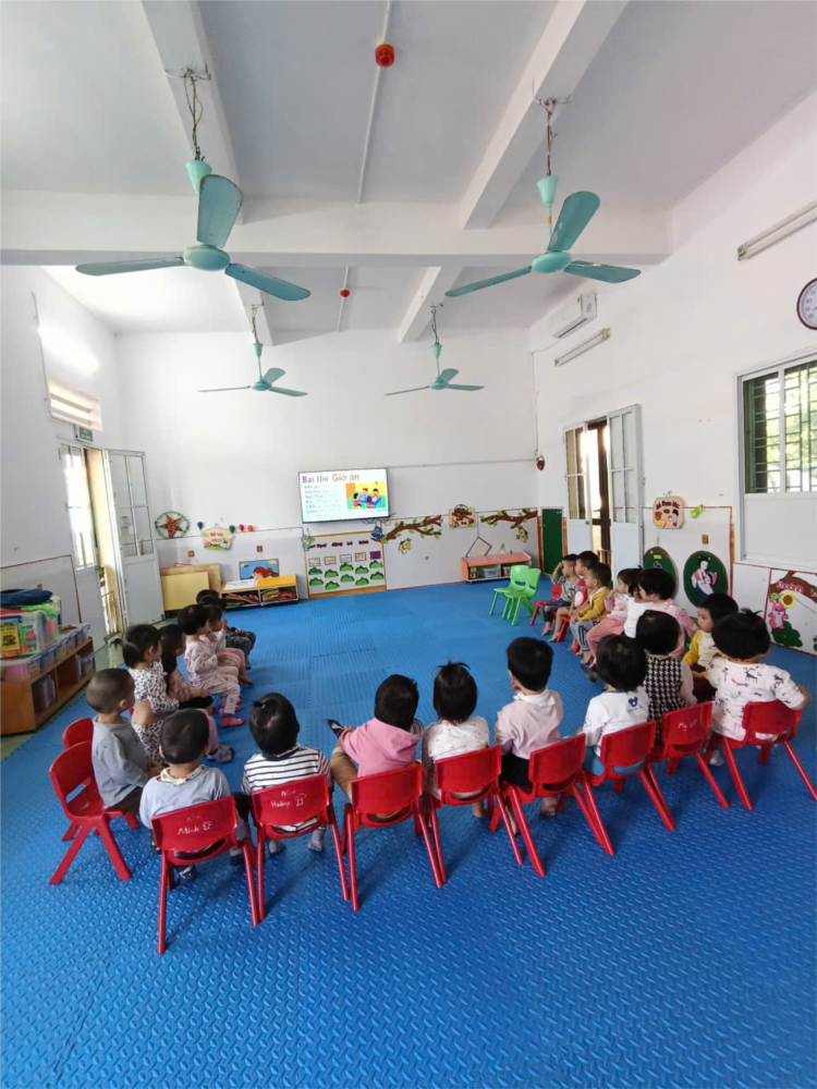 “Giờ ăn”, cô giáo tổ chức các hình thức học tập sinh động, lấy trẻ làm trung tâm. Trẻ được quan sát tranh minh họa, nghe cô đọc mẫu và cùng nhau đọc theo nhịp điệu vui tươi. Cô khuyến khích trẻ thể hiện cảm xúc, giọng đọc tự nhiên và ghi nhớ lời thơ qua trò chơi, vận động minh họa. Hoạt động không chỉ giúp trẻ phát triển ngôn ngữ mà còn hình thành nề nếp, thói quen tốt trong giờ ăn, mang lại niềm vui và hứng thú học tập cho các bé.