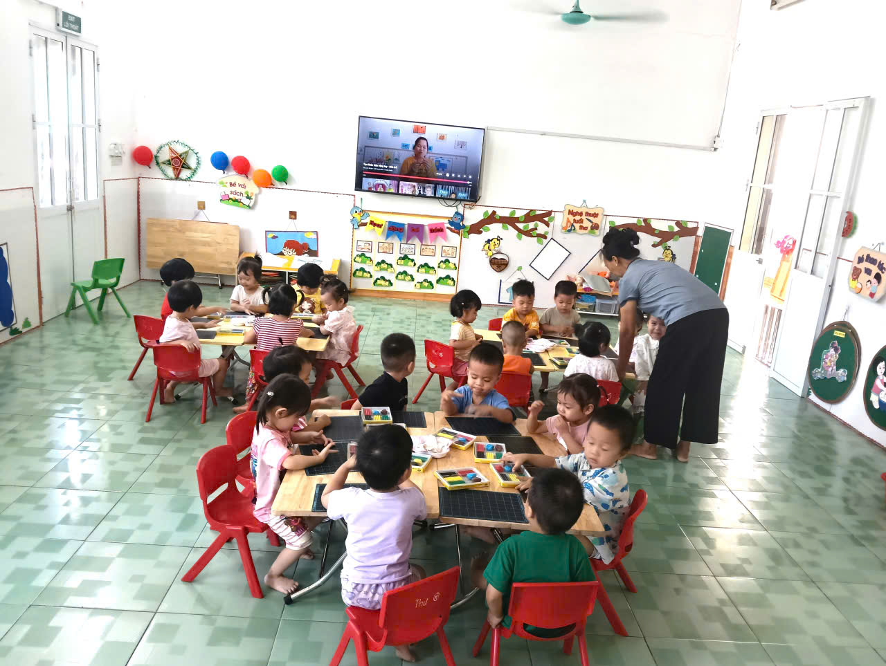 . Với đôi tay khéo léo và sự tập trung, các bé hào hứng hoàn thiện sản phẩm của mình để dành tặng cho bạn. Hoạt động không chỉ giúp trẻ rèn kỹ năng vận động tinh, phát triển óc sáng tạo mà còn giáo dục trẻ biết yêu thương, chia sẻ với những người xung quanh.