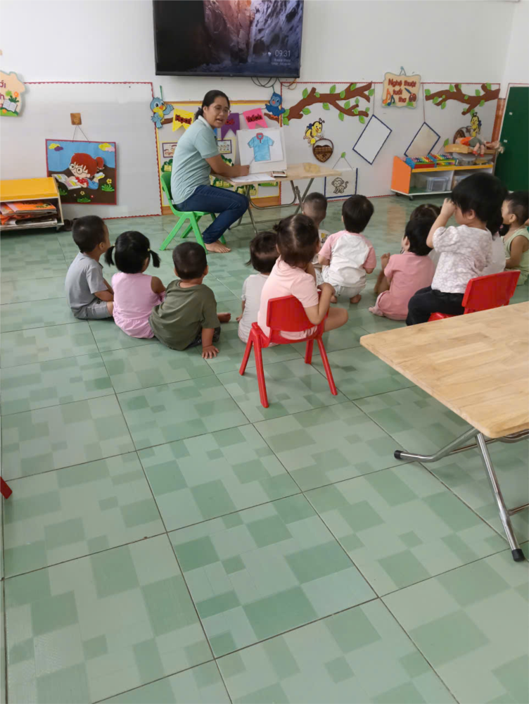 , tạo nên những chiếc áo xinh xắn. Cô giáo quan sát, khích lệ, giúp trẻ hoàn thành sản phẩm theo khả năng của mình. Qua tiến trình này, trẻ vừa rèn luyện kỹ năng vận động tinh, vừa biết thể hiện tình cảm yêu thương dành tặng cô giáo.