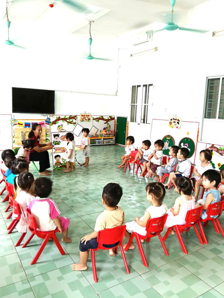 Trong giờ học, cô cho trẻ nhận biết các khuôn mặt cảm xúc khác nhau qua tranh. Sau đó, cô hướng dẫn trẻ quan sát, bắt chước các nét mặt vui, buồn, ngạc nhiên,t