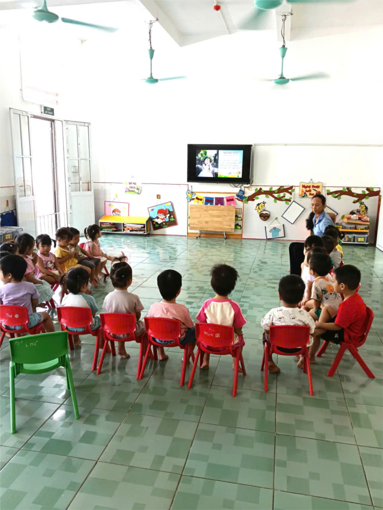 Trong hoạt động âm nhạc hôm nay, các bé lớp nhà trẻ 24-36 tháng được học hát bài “Đôi mắt xinh”. Với giai điệu vui tươi, lời ca trong sáng, trẻ vừa hát vừa kết hợp vận động minh họa, tạo nên không khí hào hứng, sôi nổi. Qua hoạt động, trẻ thêm yêu thích âm nhạc, rèn luyện sự tự tin và khả năng cảm nhận cái đẹp. Đây cũng là cơ hội để các con phát triển ngôn ngữ, tình cảm và kỹ năng giao tiếp tự nhiên với bạn bè, cô giáo.